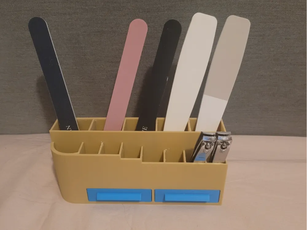 Chiếc khay in 3D tiện lợi giúp bạn sắp xếp dũa, kềm và dụng cụ làm móng thật ngăn nắp. Thiết kế thông minh với các ngăn chia và 2 hộc kéo nhỏ, giúp góc làm đẹp của bạn luôn gọn gàng và dễ lấy đồ khi cần thiết.