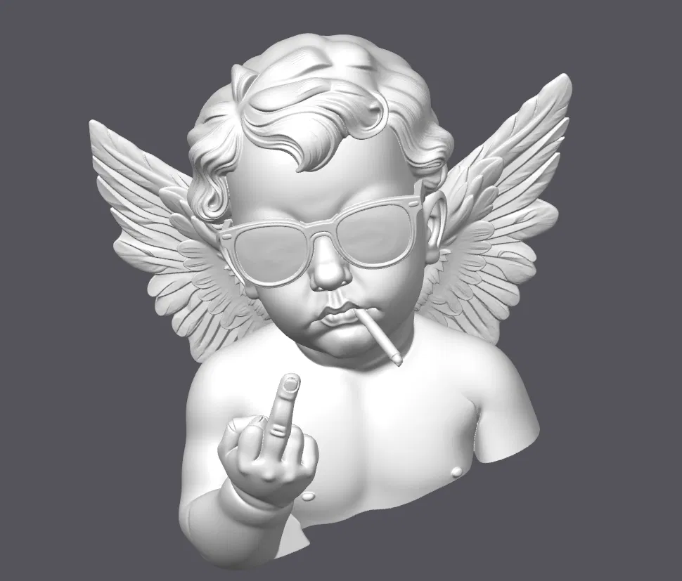 Bạn đang tìm kiếm một món đồ trang trí lạ mắt, phá cách để tạo điểm nhấn cho không gian làm việc hay góc trưng bày mô hình của mình? Mẫu 3D "Thiên thần đeo kính râm" (Angel with Sunglasses) chắc chắn sẽ là lựa chọn không thể bỏ qua. Thay vì hình ảnh những thiên thần truyền thống hiền lành, mẫu thiết kế này mang đến một vẻ ngoài cực kỳ nổi loạn với kính mát, điếu thuốc trên môi và cử chỉ tay đầy táo bạo, tạo nên một sự tương phản đầy thú vị và hiện đại.
