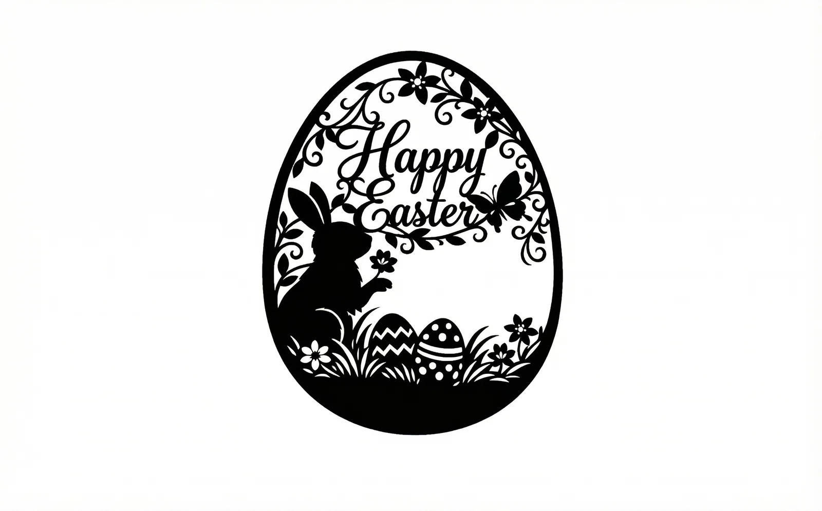 Cùng khám phá mẫu thiết kế 3D Happy Easter cực xinh xắn này nhé! Mô hình có hình chú thỏ đáng yêu, hoa cỏ, một chú bướm nhỏ tinh tế, hai quả trứng Phục sinh được trang trí cầu kỳ cùng dòng chữ "Happy Easter" viết bằng kiểu chữ cursive mềm mại, tất cả nằm gọn trong khung hình quả trứng lớn.