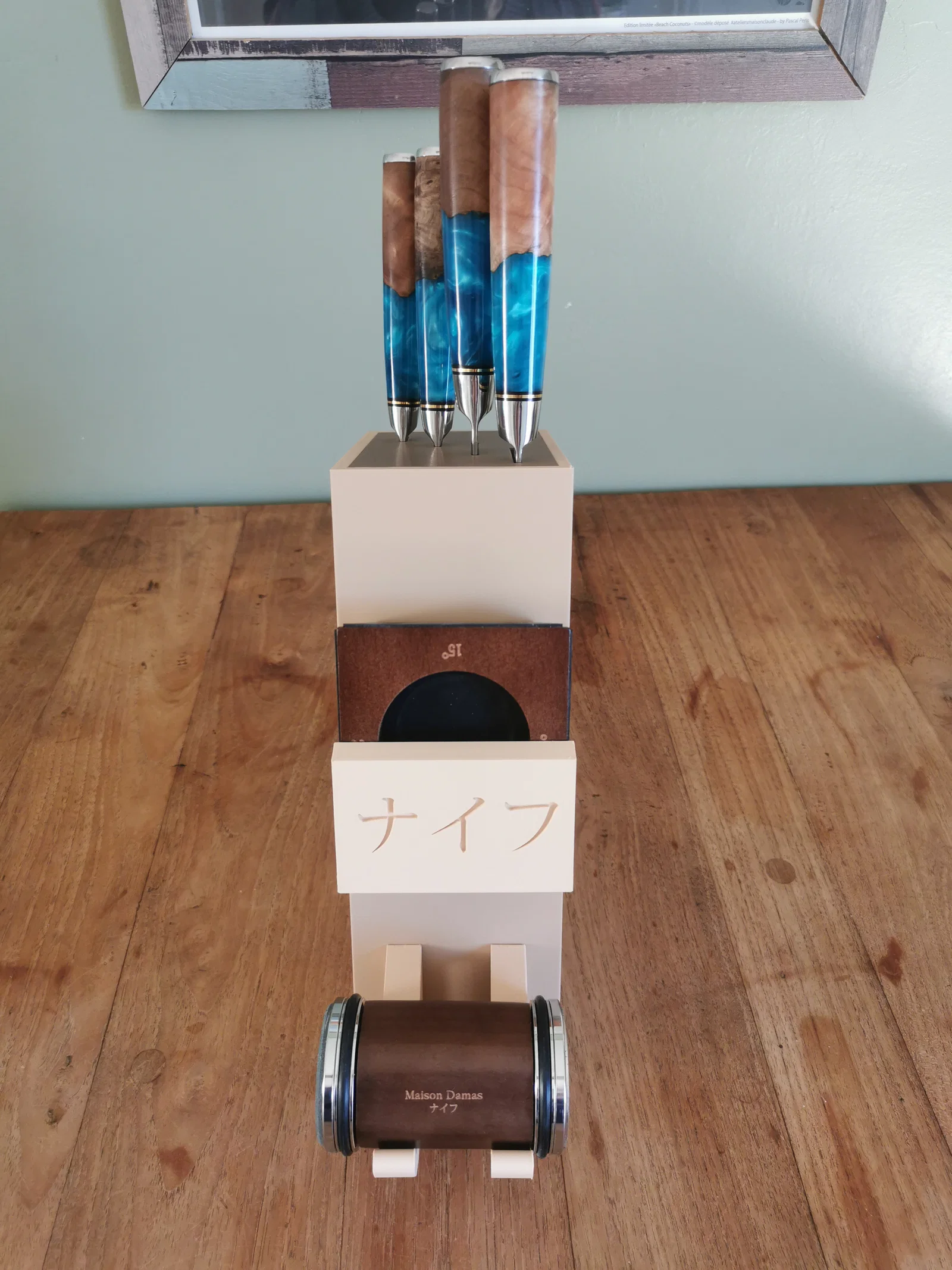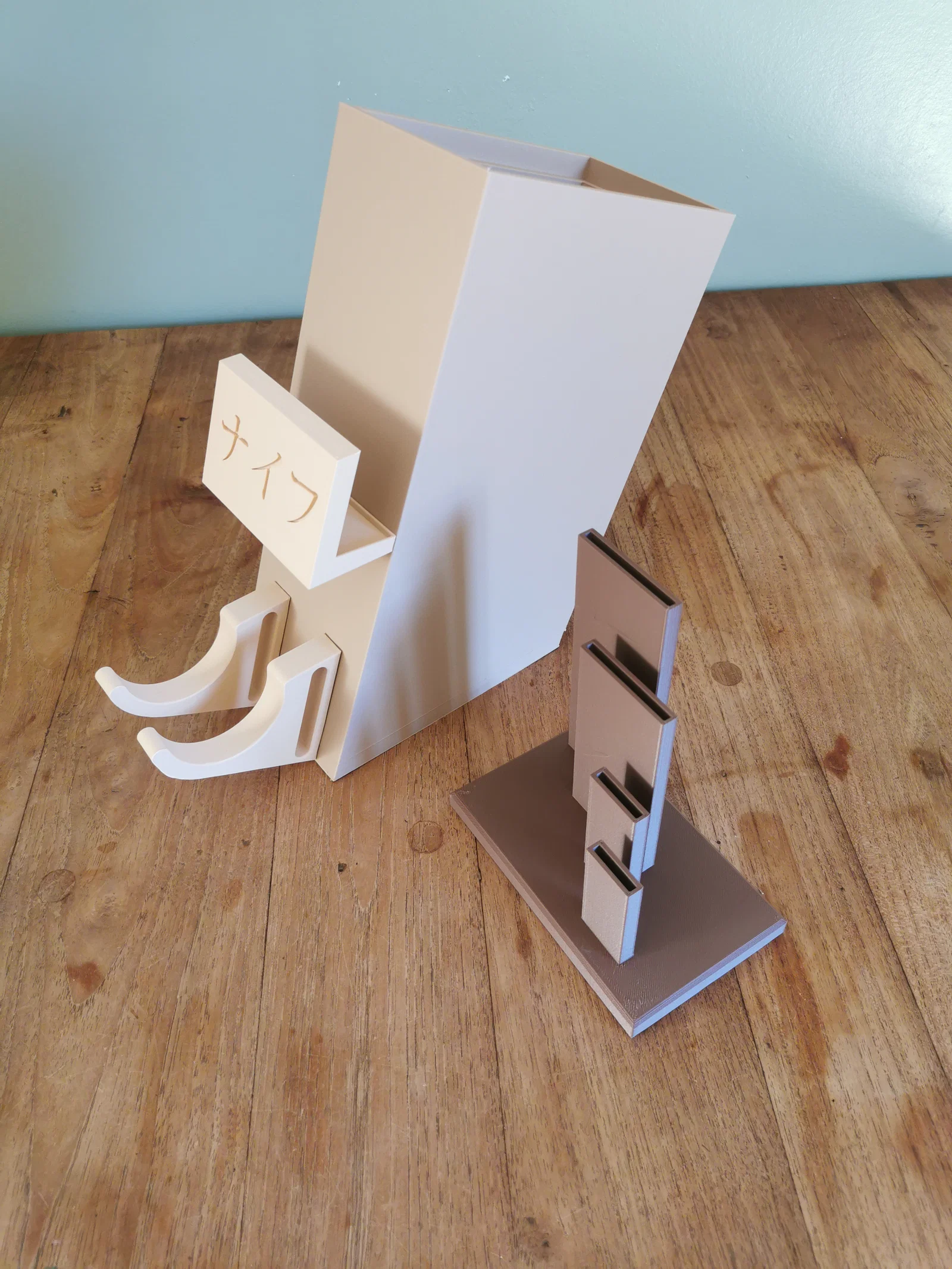 Nâng tầm không gian trưng bày bộ dao của bạn với giá đỡ đa năng kết hợp khay để dụng cụ mài DAMAS. Thiết kế tối ưu, đi kèm đầy đủ file tùy chỉnh để bạn in ấn dễ dàng với máy in 3D.