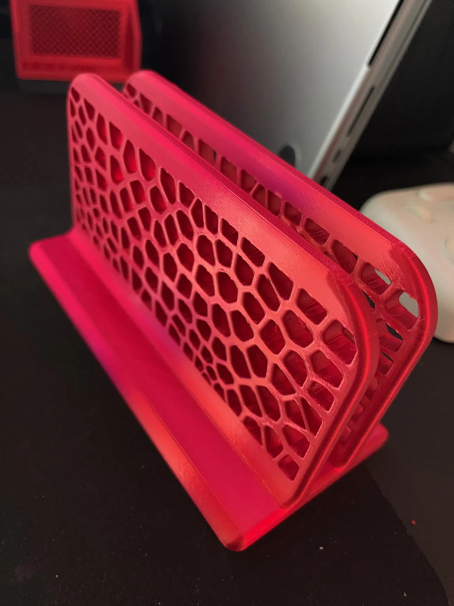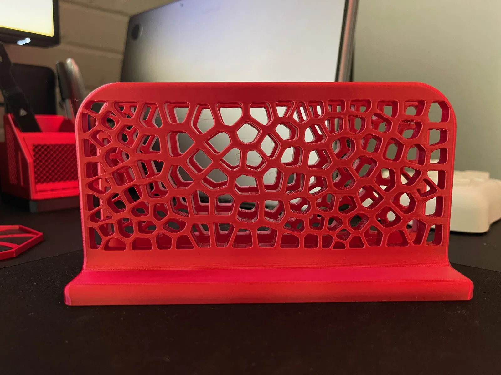 Tôi đã thiết kế lại chiều rộng của các giá đỡ thẳng đứng, sử dụng ít filament hơn nhiều và thêm một mẫu ô Voroni thông qua những cái này - cả về mặt thẩm mỹ và tiết kiệm filament.