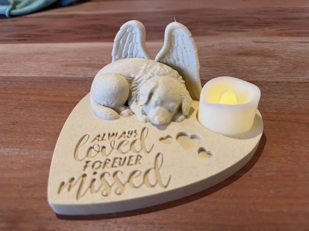 Bức tượng thiên thần Great Pyrenees này được tạo ra như một món quà tri ân đầy cảm xúc dành cho người bạn đồng hành trung thành. Với thiết kế tinh tế kèm đế cắm nến tealight, đây là vật kỷ niệm ý nghĩa để lưu giữ những ký ức đẹp về chú chó yêu quý.