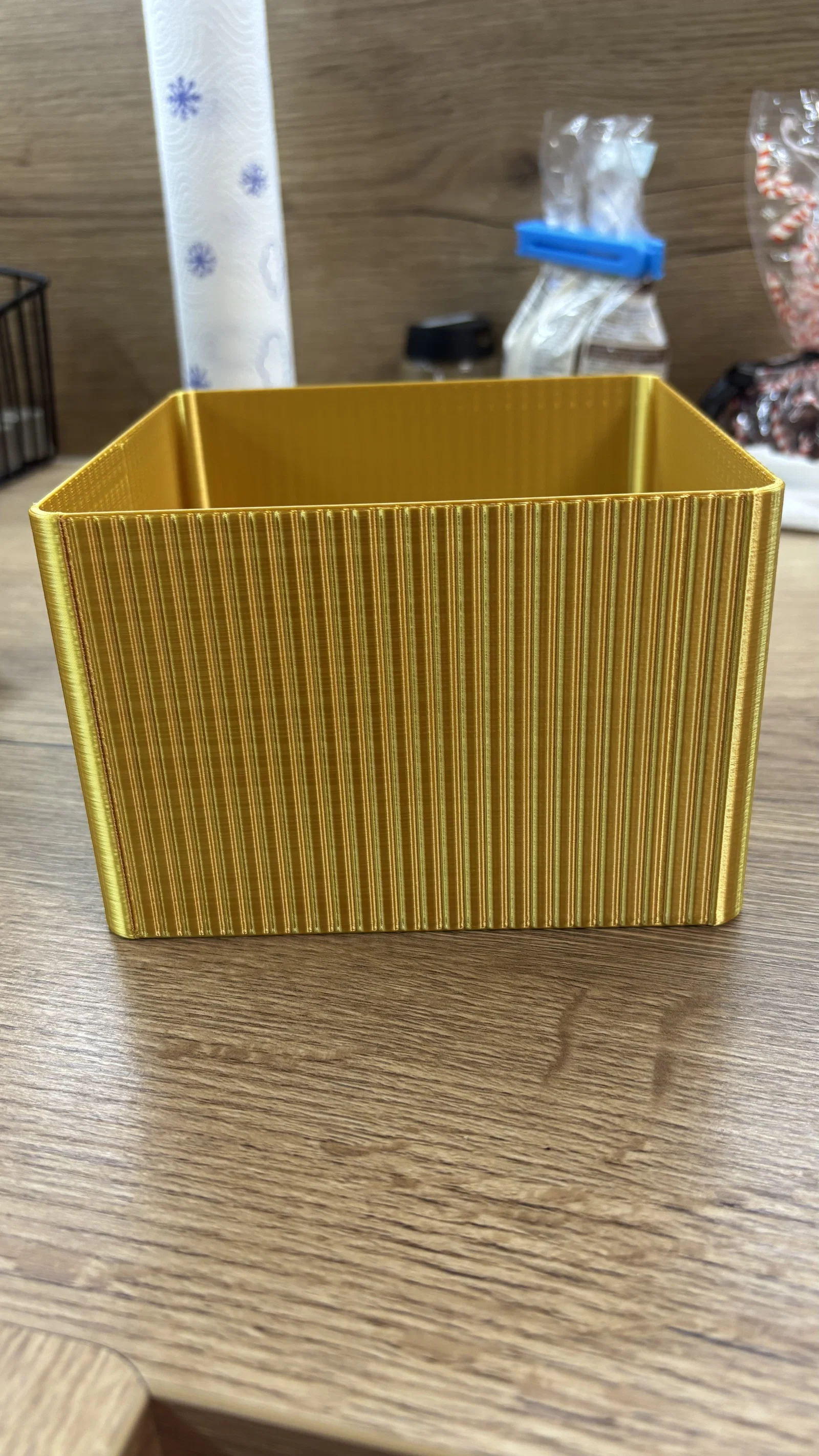 Bạn đang tìm kiếm một giải pháp đơn giản nhưng tinh tế để sắp xếp lại bàn làm việc hay góc học tập của mình? Chiếc hộp in 3D này chính là lựa chọn hoàn hảo với kích thước vuông vắn 15x15cm và chiều cao 10cm, đủ rộng rãi để chứa nhiều vật dụng cá nhân. Thiết kế bên ngoài nổi bật với các đường rãnh dọc song song chạy đều quanh thân hộp, không chỉ tăng thêm vẻ cứng cáp mà còn tạo điểm nhấn thẩm mỹ hiện đại cho không gian nội thất của bạn.