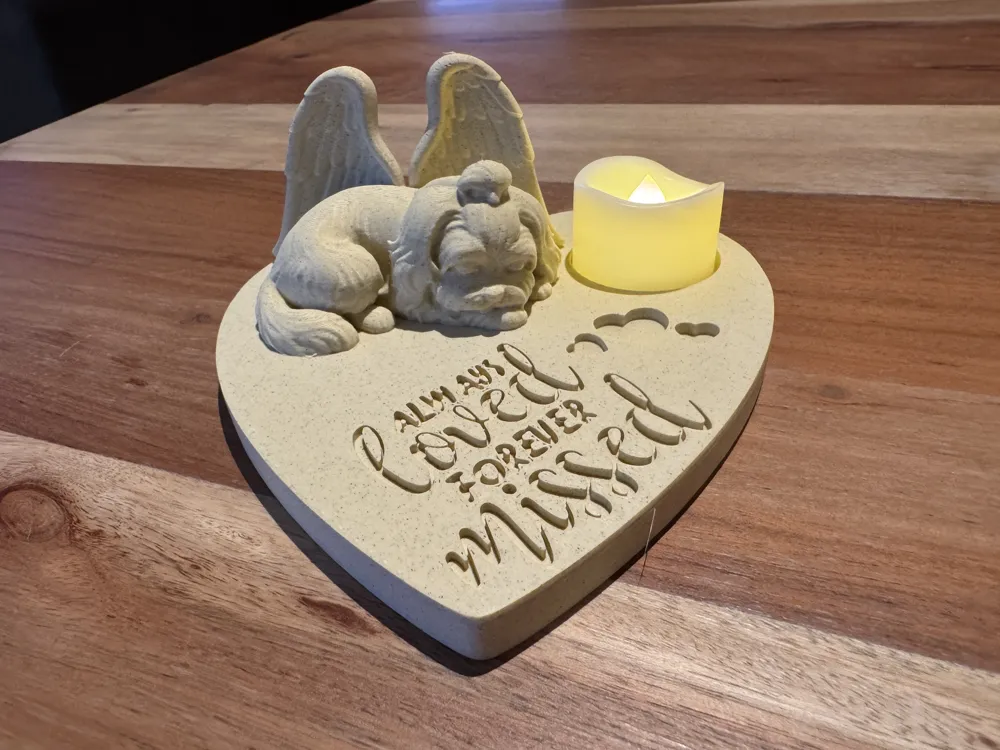 Món quà kỷ niệm ý nghĩa dành cho chú cún Shih Tzu hoặc Lhasa Apso thân yêu. Với thiết kế đôi cánh thiên thần, đế hình trái tim và chỗ đặt nến tealight, đây là vật phẩm trang trí tinh tế giúp lưu giữ những ký ức đẹp về người bạn trung thành.