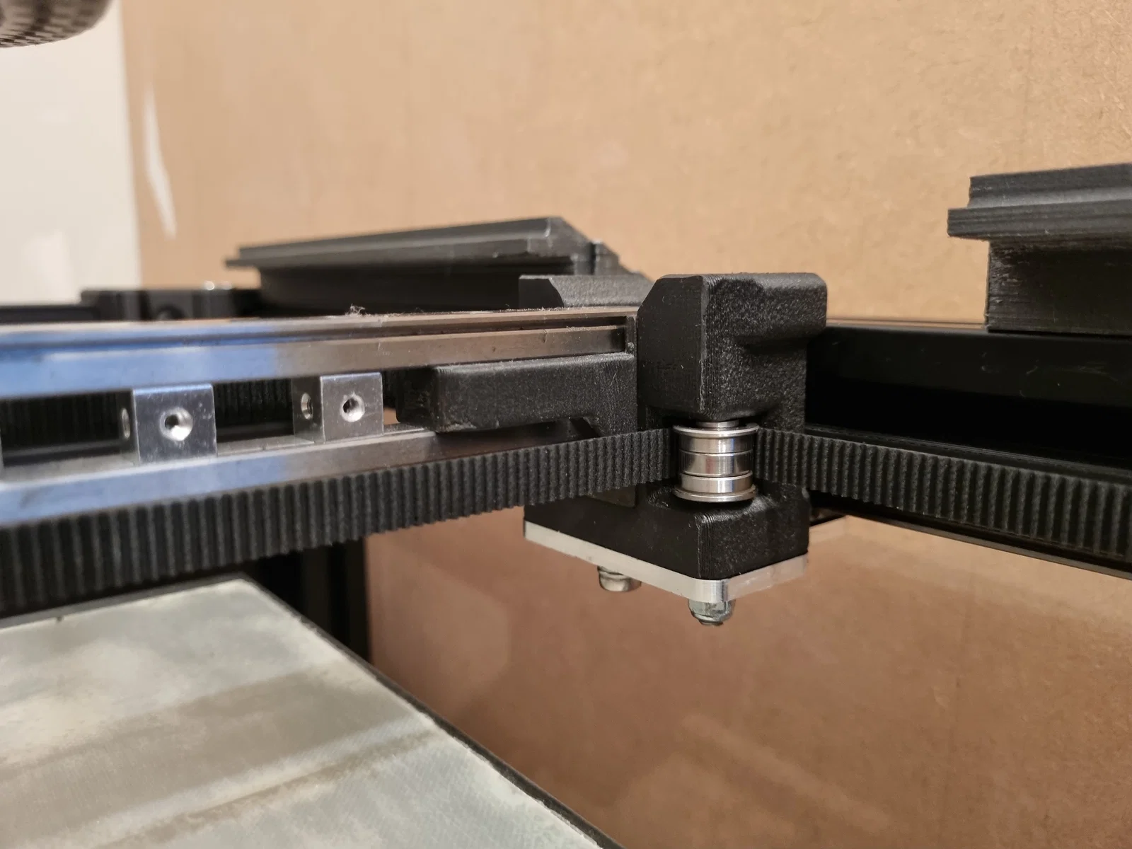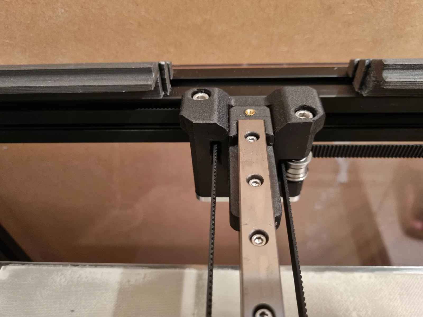 Với mod này, mặt trên và mặt dưới của gantry giống hệt nhau. Các khối nhôm ở giữa là các mảnh rời và không thể gây cong vênh. Một lợi ích cộng thêm là mình đã gắn xe trượt của thanh ray dưới vào đáy của EVA để tăng thêm độ cứng. Độ rung lắc trục y (y-resonances) gần như bằng không sau khi mod. Cách này không giảm trọng lượng mà thêm khoảng 100g, do ray khá nặng. Nhưng máy in của mình chạy mượt mà hơn bao giờ hết.