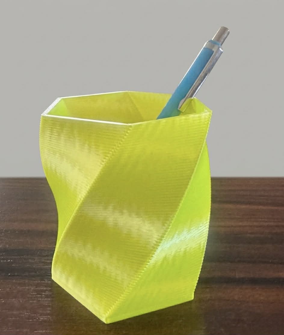 Ống Đựng Bút Xoắn Tối Giản – Không Cần Support là món phụ kiện bàn làm việc in 3D hiện đại, tinh tế, dành cho những ai yêu thích sự tối giản công năng và hình khối hình học thanh lịch. Với thân xoắn mượt mà, miệng lục giác và kiểu dáng bắt mắt, đây chính là điểm nhấn hoàn hảo cho góc làm việc của bạn.