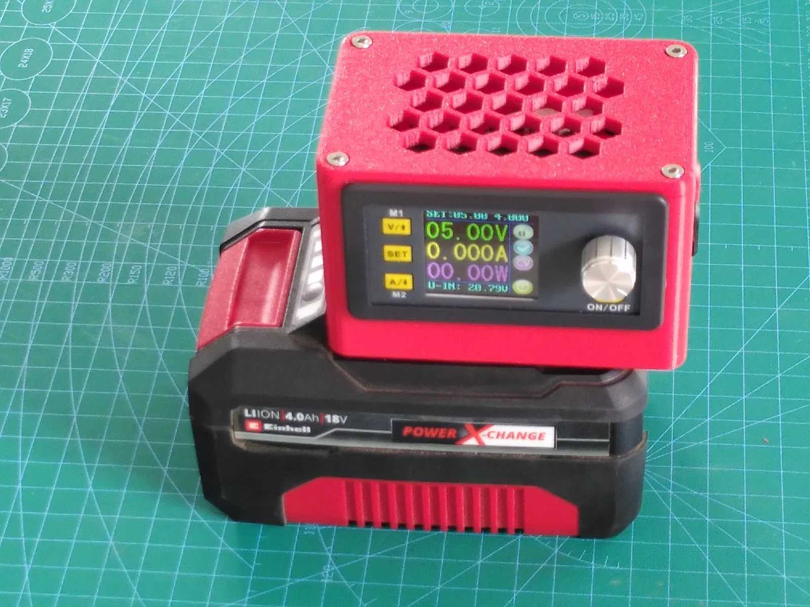 Để biết mô tả đầy đủ và hướng dẫn xây dựng, vui lòng xem mô hình gốc Mini Lab Bench Power Supply (DPS3003) Powered by Einhell Batteries or DC Source. Phiên bản remix này được thiết kế cho hoạt động độc lập bằng pin mà không có tùy chọn nguồn DC bên ngoài. Điều này cho phép có một công tắc bật/tắt đơn giản phù hợp với lỗ cắt 13mm x 19mm. Các lỗ cắt bổ sung đã được thêm vào để cho phép DPS500x có được độ bám tốt hơn.