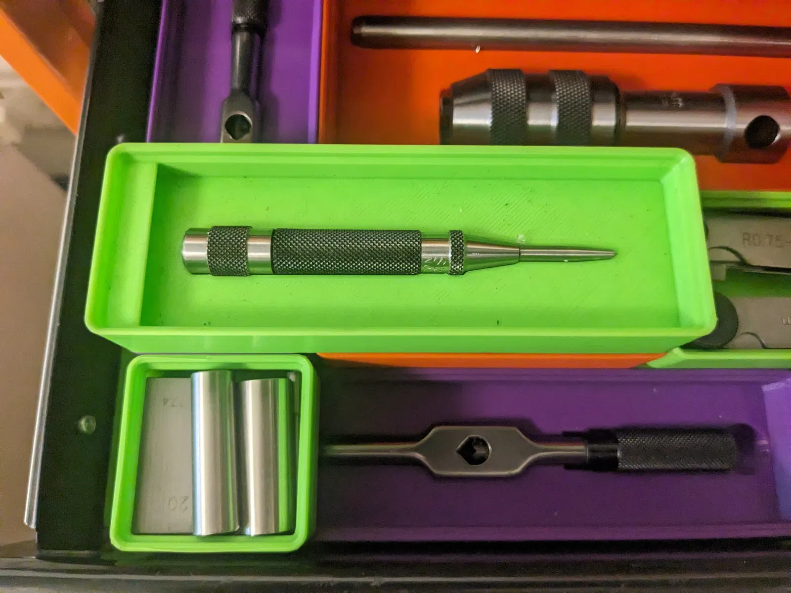 Một mô -đun Gridfinity để lưu trữ một cú đấm trung tâm tự động Starrett 18AA. 3x1x3 (hoặc nửa đơn vị) có thể xếp chồng lên nhau