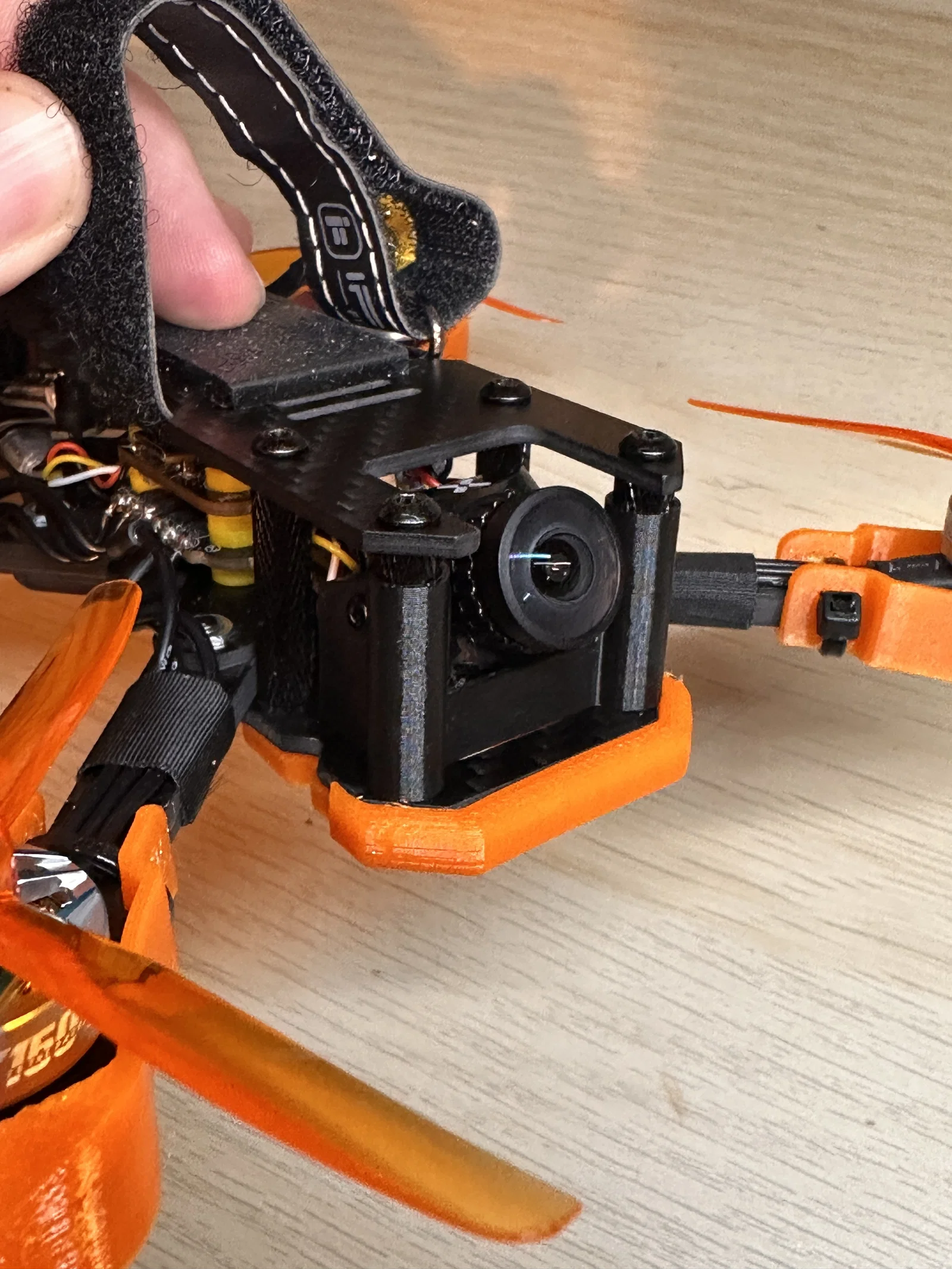 Ngàm gắn camera cho khung Botgrinder Grinderino. Ngàm này giúp cố định camera ở góc nghiêng 25 độ. Mình thiết kế dựa trên thông số của Foxeer T-Rex, nhưng nó cũng sẽ tương thích tốt với hầu hết các loại camera khác. Nếu có chênh lệch nhỏ, bạn chỉ cần khoan thêm lỗ hoặc điều chỉnh vị trí bắt ốc là được nha.