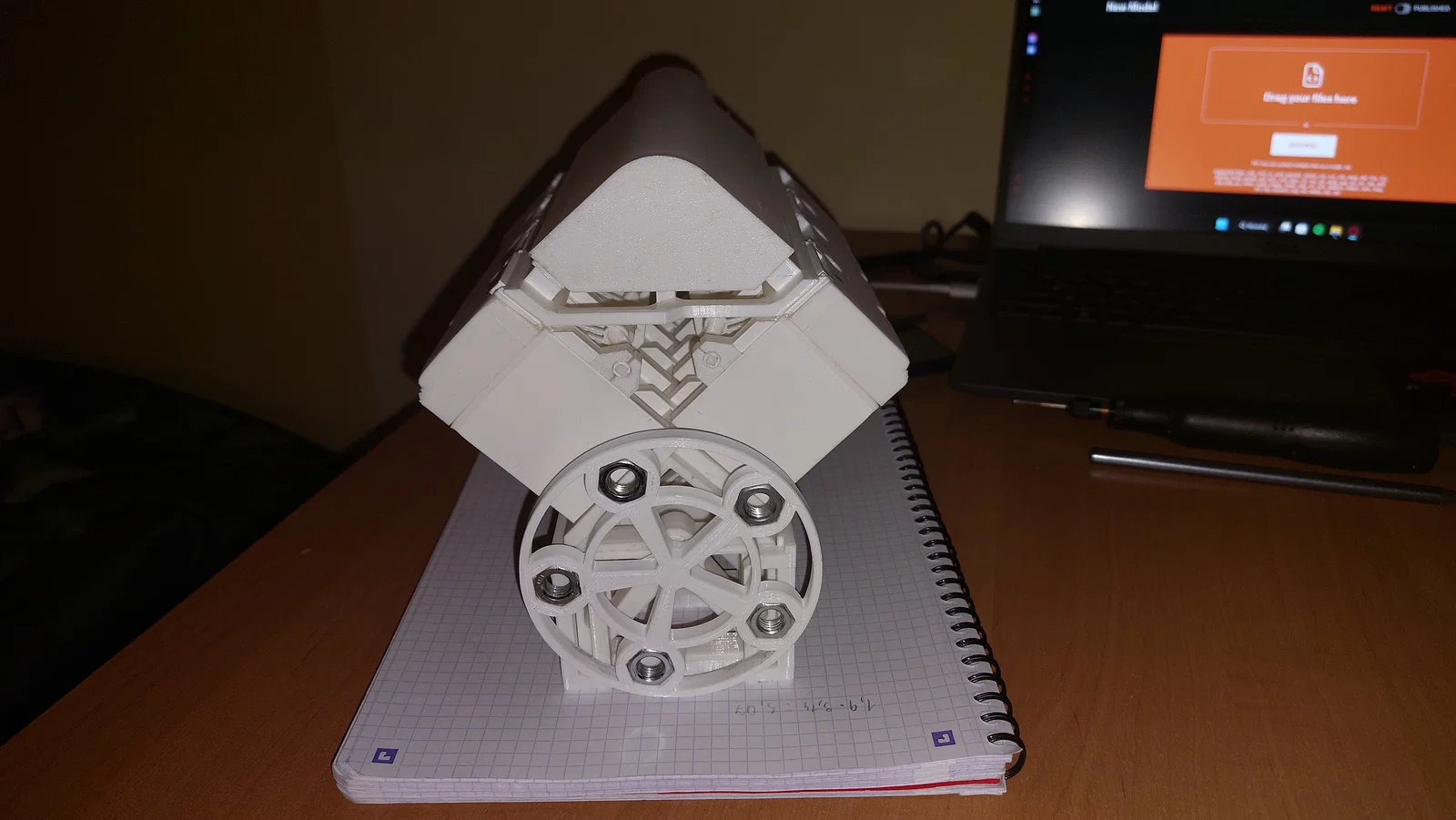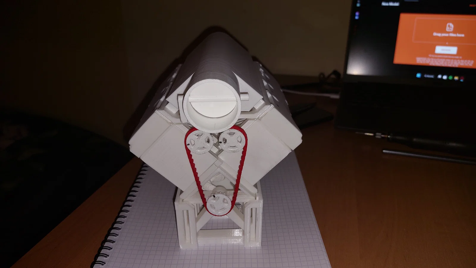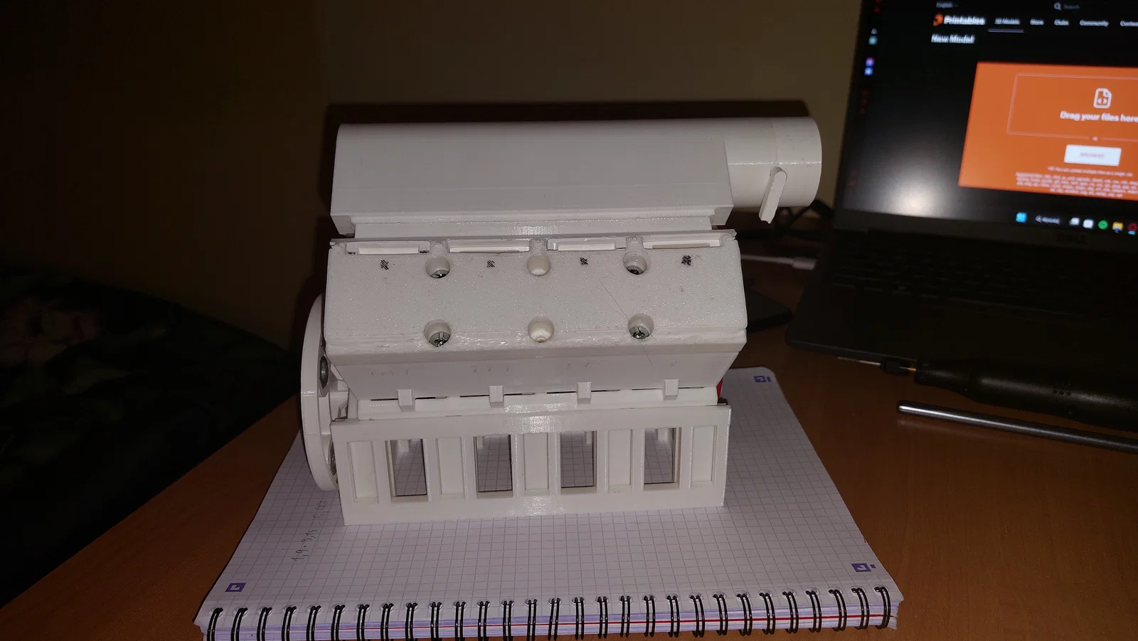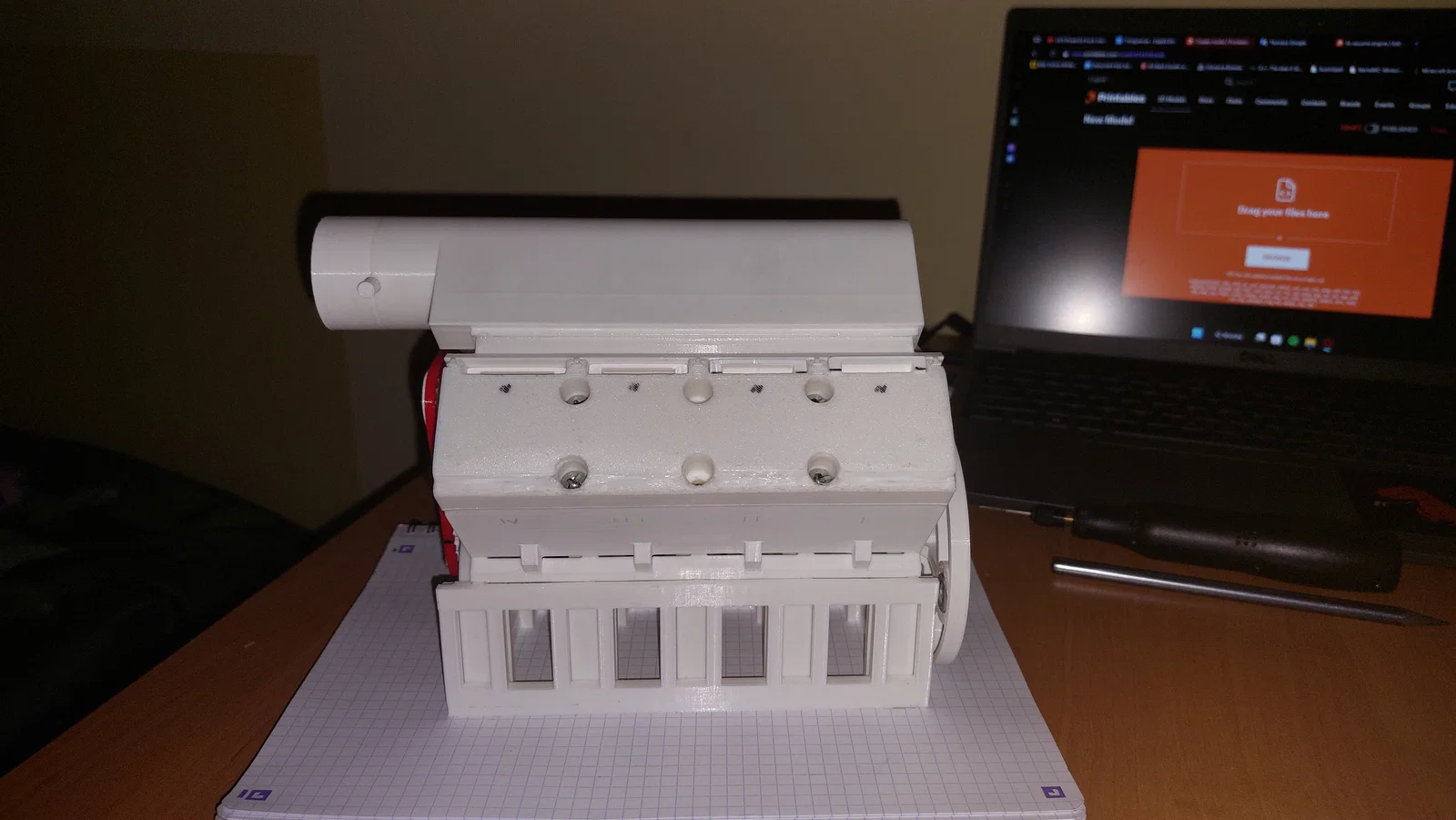 Khám phá mẫu động cơ V8 được in 3D hoàn toàn, hoạt động nhờ lực hút từ máy hút bụi. Lưu ý quan trọng: bạn cần mài nhẵn bề mặt lòng xi-lanh và các linh kiện chưa khớp để đảm bảo động cơ vận hành ổn định.