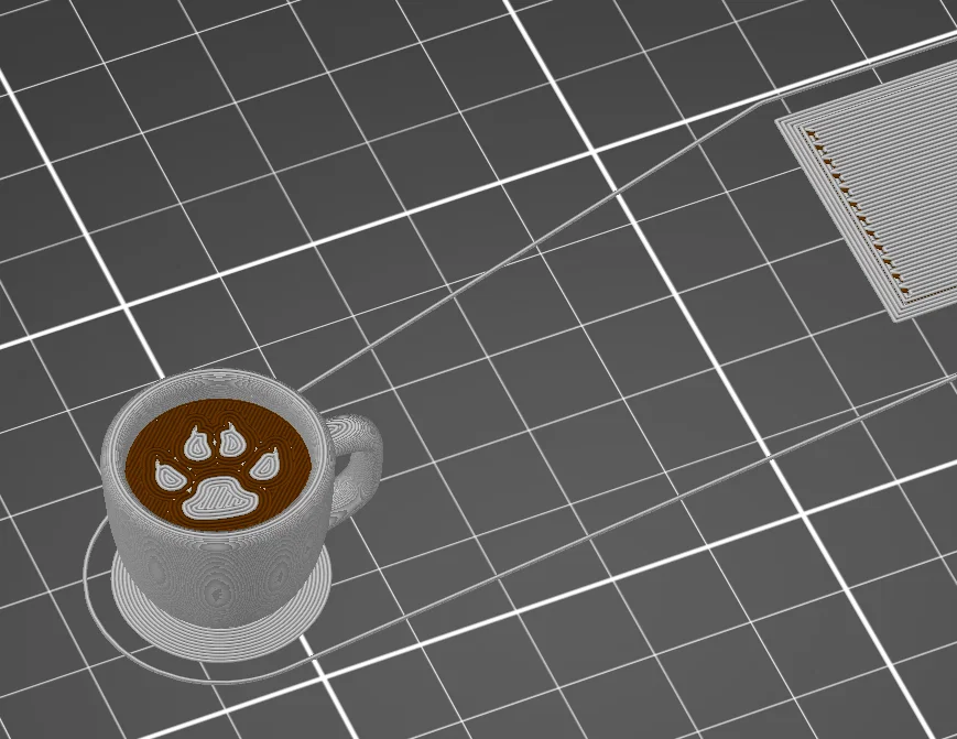 Mình muốn in token 'nghỉ giải lao' (coffee break) theo phong cách thú cưng với nhiều màu sắc khác nhau. Như mọi khi, mình sử dụng thủ thuật 'giả lập nhiều đầu đùn' với mã đổi công cụ (tool change code) tùy chỉnh cho MK3S. Tháp lau (wipe tower) giúp quá trình in an toàn hơn, mình cũng dùng thêm tính năng 'no sparse layers wipe tower' để tiết kiệm nhựa. Mình dùng độ phân giải 0.1mm để chi tiết được sắc nét nhất.