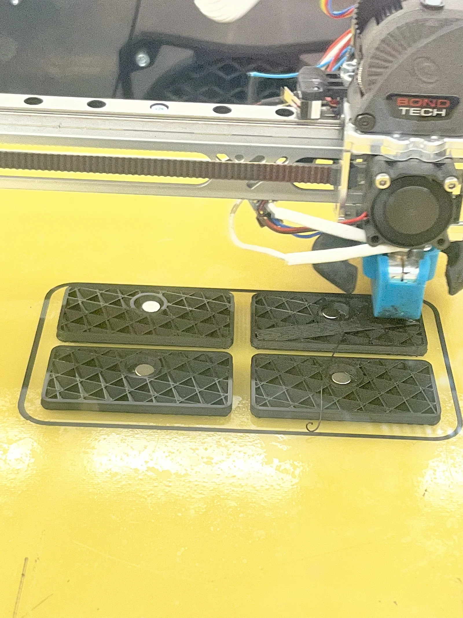 Kích thước nam châm chính tối đa là: đường kính 10mm, chiều cao 3mm! Đây là kích thước đã tính cả dung sai; chính xác thì phần không gian để lắp là cao 3.2mm và đường kính 10.1mm. Các lỗ nam châm phụ hỗ trợ kích thước lên đến 7mm đường kính và độ dày tương tự là 3.2mm. Bạn có thể tùy chỉnh scale trong phần mềm slicer để đạt được kích thước như ý! Khi sử dụng 4 viên nam châm, hãy đặt chúng theo chiều kim đồng hồ với các cực xen kẽ: LÊN, XUỐNG, LÊN, XUỐNG. Cách này giúp nam châm không bị nhảy ra ngoài trong quá trình lắp hoặc in ấn.