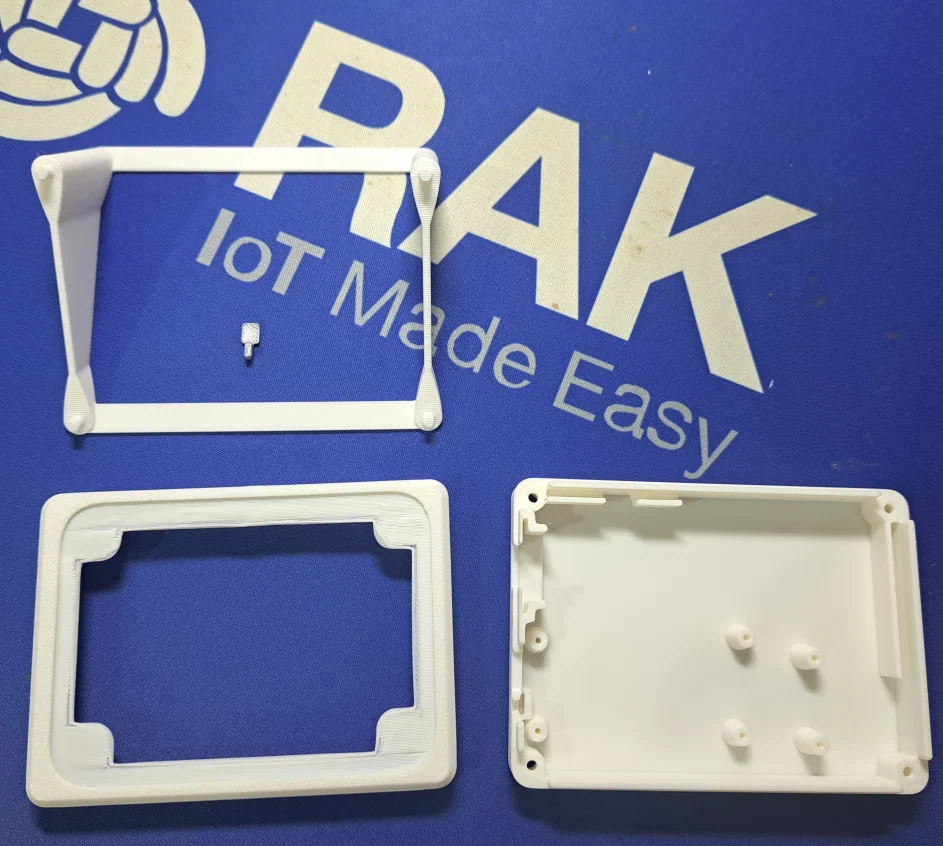 Màn hình TFT RAK14014 của WisBlock có độ phân giải cao hơn và khung lớn hơn, nên không dùng được vỏ máy ban đầu. Vì vậy, mình đã tự thiết kế một chiếc vỏ mới vừa vặn với hệ thống RAKwireless WisBlock.