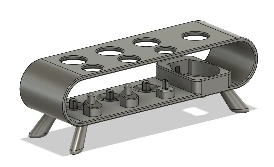 Đây là một cái đế đơn giản dành cho hai bàn chải Oral-B iO 6 và một chiếc Pro Kids. Mình lấy cảm hứng từ một số mẫu đế khác nhưng không may là chúng không phù hợp với nhu cầu sử dụng của mình nên mình đã tự thiết kế lại. Bạn cần dùng support (hỗ trợ) khi in phần thân chính. Phần chân đế cần phải dán keo cố định vào vị trí.