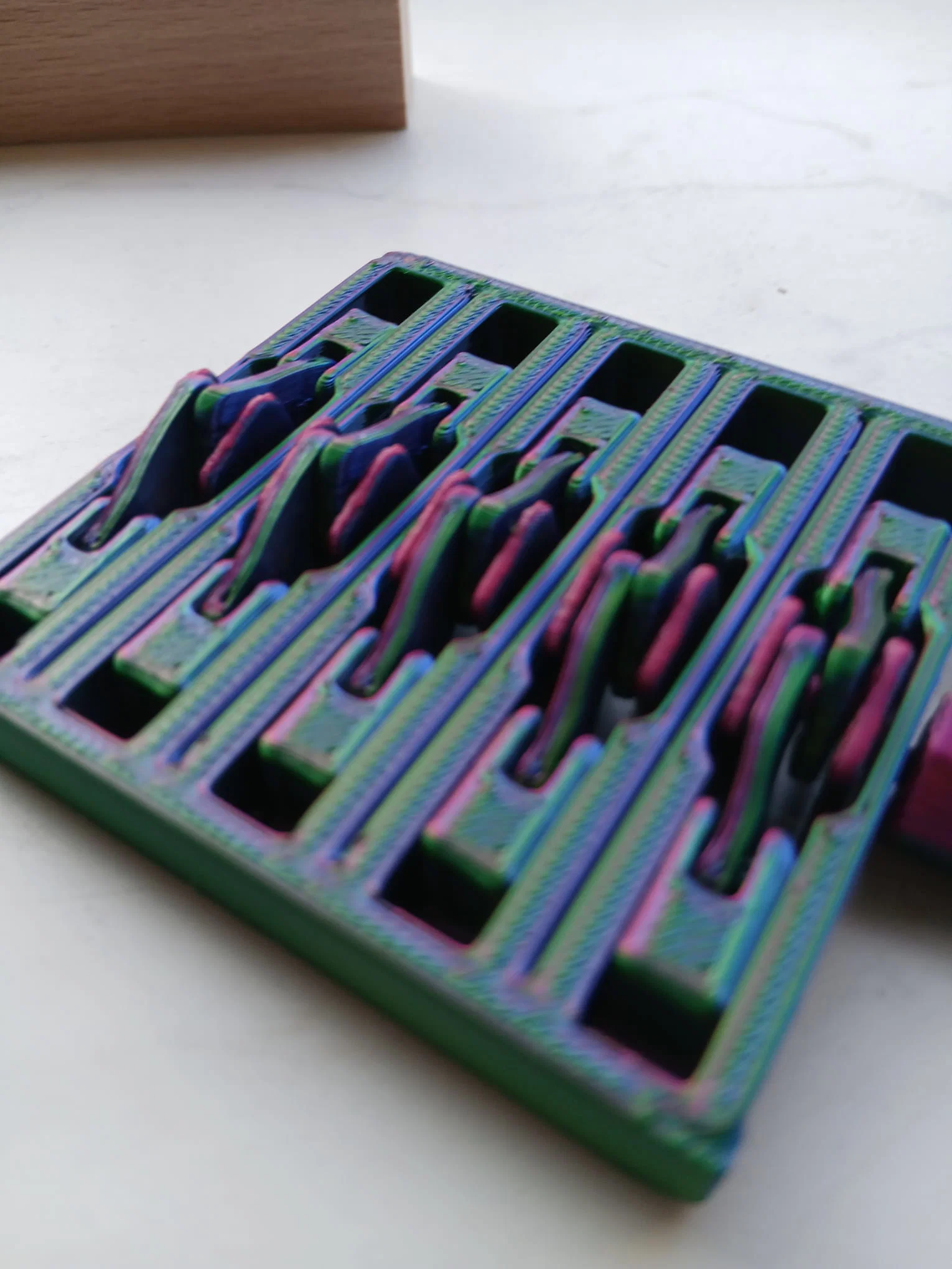 Mình dùng nhựa PLA 3 màu (triple color), nhìn kết quả rất tuyệt luôn 😊