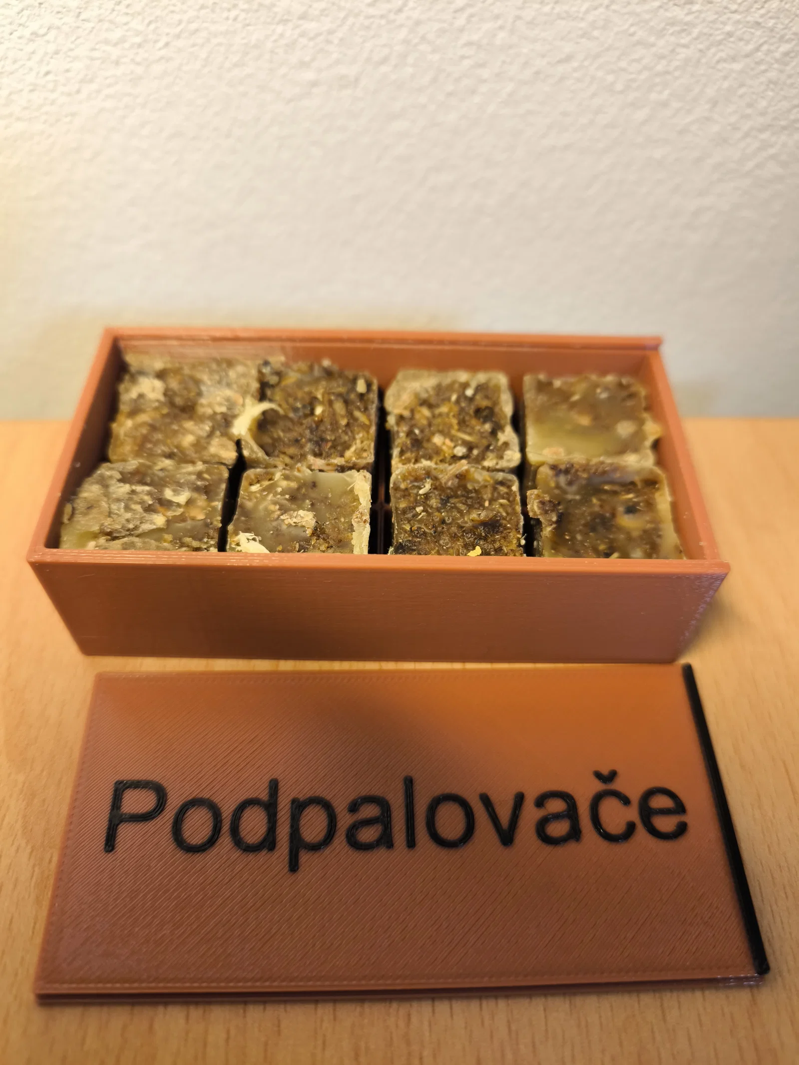 Hộp đựng du lịch dành cho 8 viên nhóm lửa, cực kỳ tiện lợi khi đi cắm trại. Các đường link dẫn tới mẫu hộp chống nước và khuôn để tự làm viên nhóm lửa sẽ nằm ở bên dưới. Mỗi viên nhóm lửa có thể cháy được khoảng 8 phút.