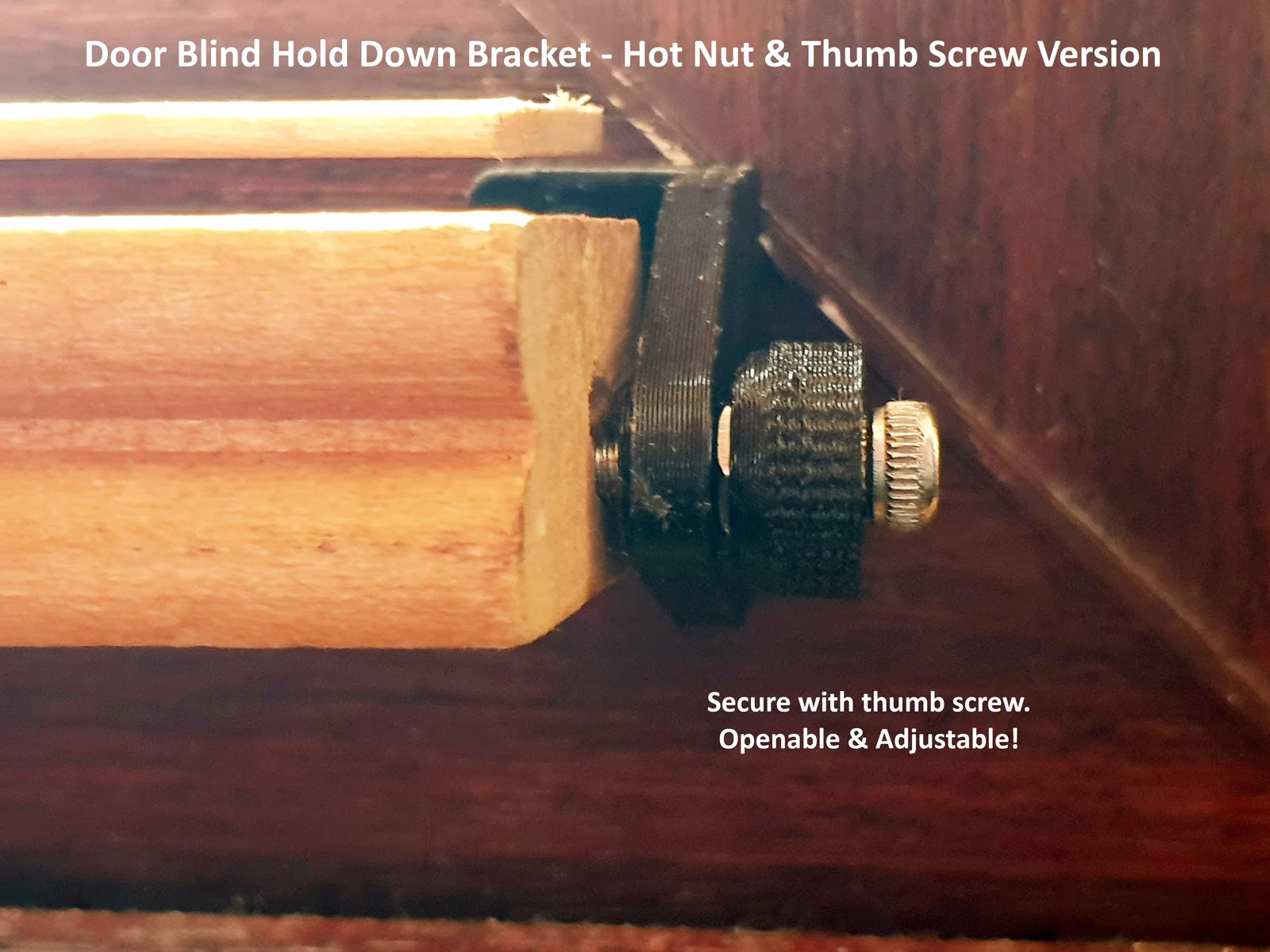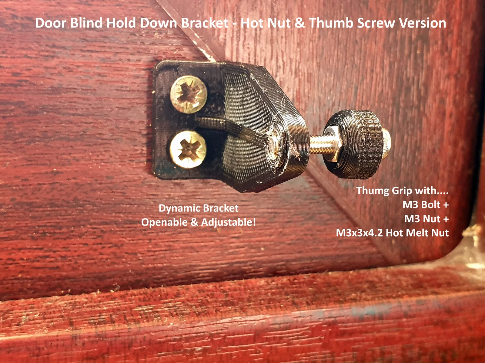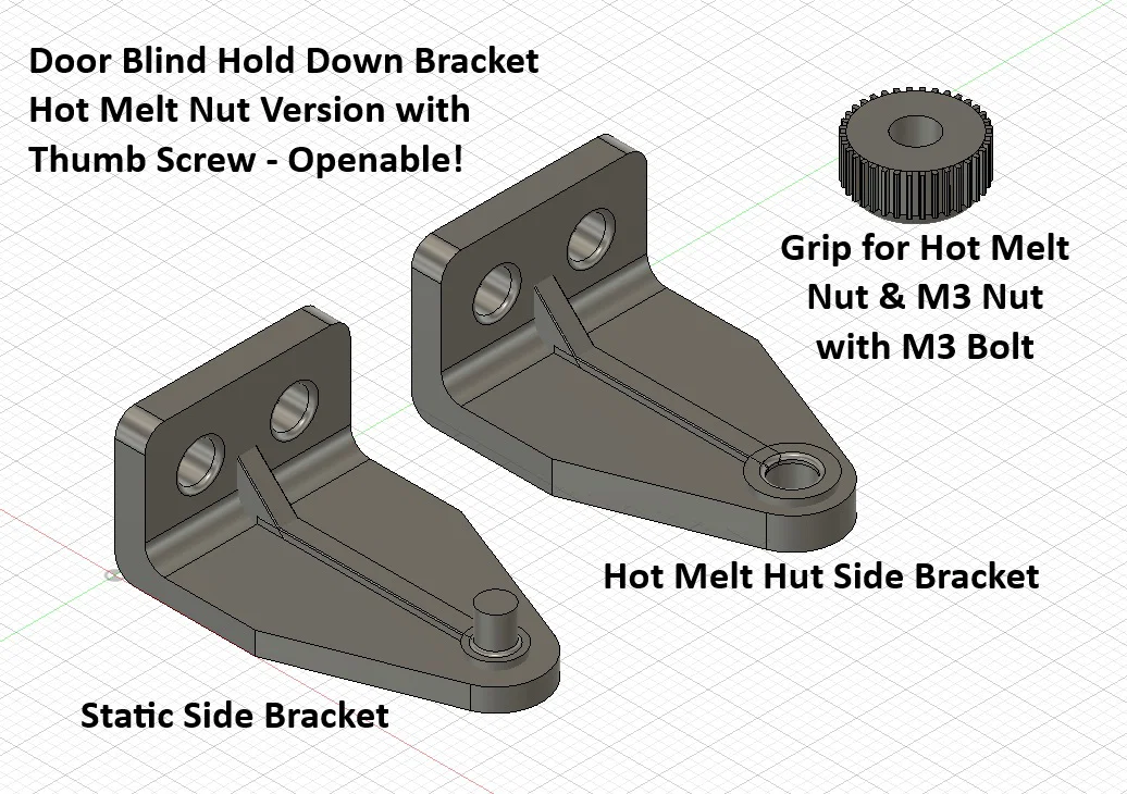 Phiên bản nâng cao của pát giữ rèm cửa, sử dụng đai ốc nhiệt và ốc vặn tay M3 để tạo giải pháp linh hoạt, dễ dàng mở khóa giúp cố định rèm chắc chắn mà không gây hư hỏng khi nâng hạ rèm. Thiết kế bền bỉ, dễ sử dụng cho cửa ra vào.