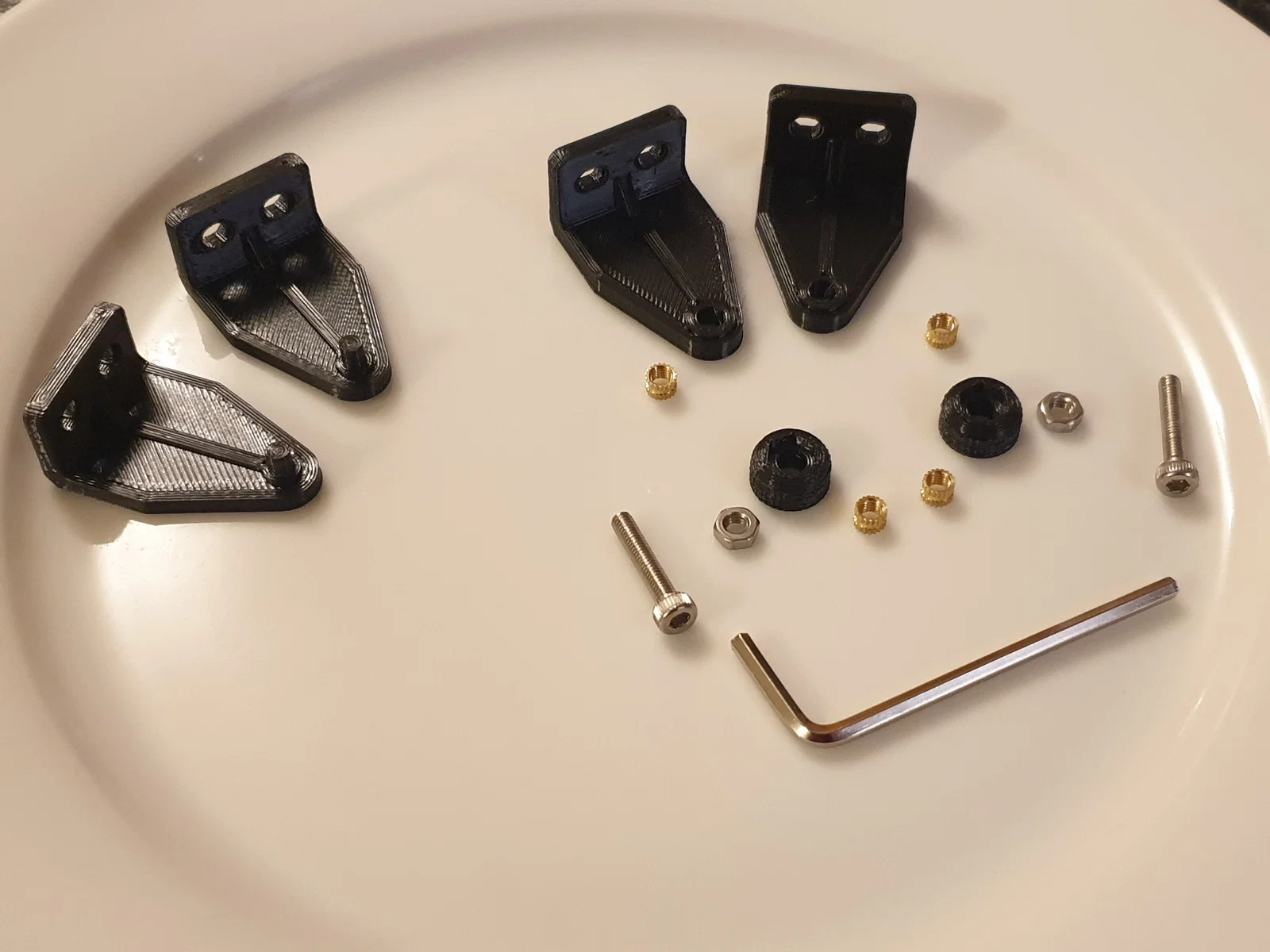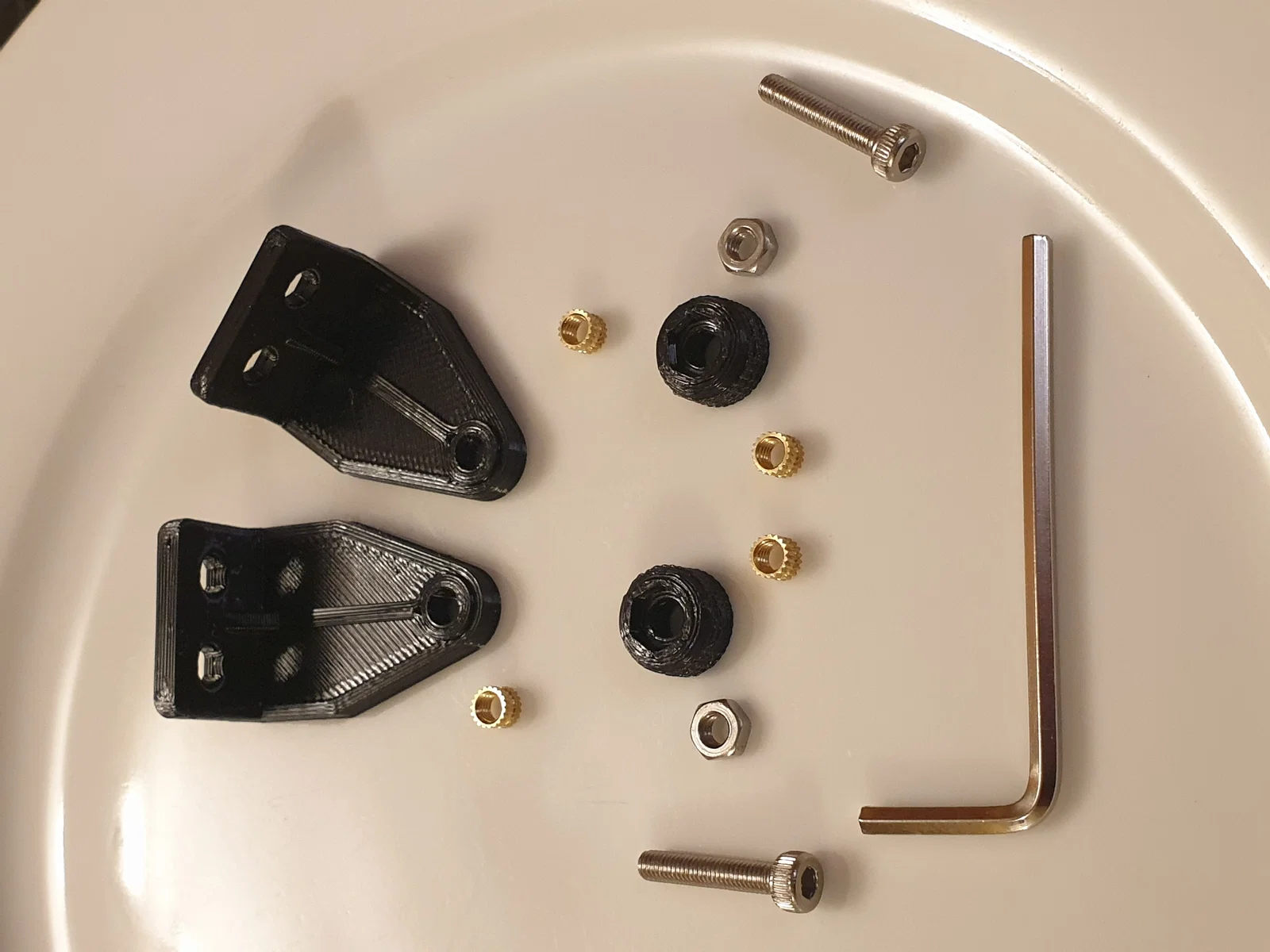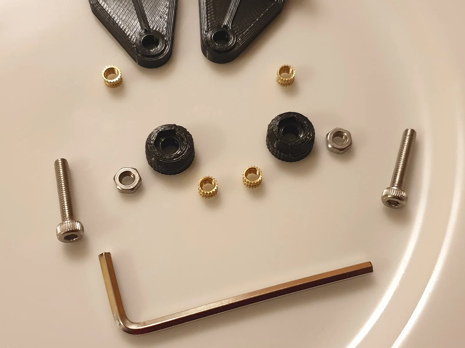 Phần Pát Tĩnh: Chốt đường kính 3.2mm, chiều cao đâm xuyên vào thanh rèm là 3.5mm. Phần Pát Động: Bulông M3 (tốt nhất là M3x16), với đai ốc nhiệt (hot melt nut) M3x3x4.2 và một đai ốc M3 thường.