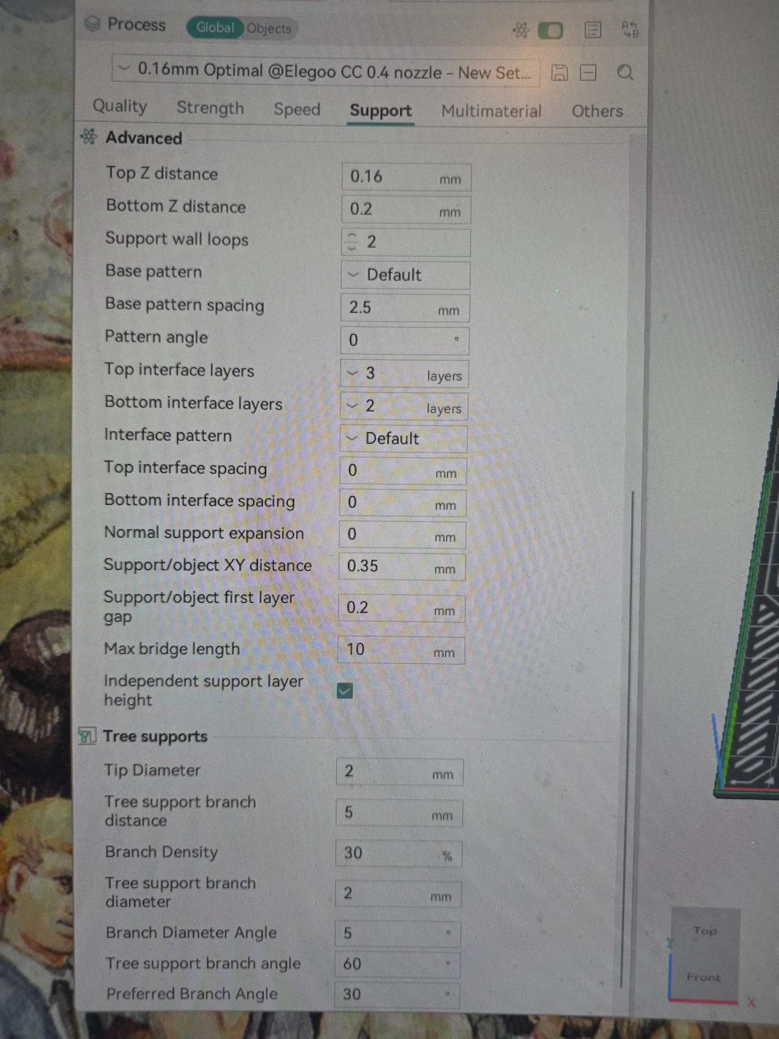 Đây là phiên bản mình remix lại từ Makerworld: https://makerworld.com/en/models/2345212-stanley-40oz-quencher-lid-opener?from=search#profileId-2564038. Mình đã tùy chỉnh lại mẫu này để các bạn không cần dùng ống hút để mở nắp nữa. Ngoài ra, mình còn thêm một cái gờ nhỏ phía trên để cầm nắm và xoay nắp dễ dàng hơn. Đây là mẫu thiết kế đầu tiên mà mình tự làm và chia sẻ, mình mới tập tành in 3D thôi, hy vọng công cụ này sẽ giúp ích được cho mọi người nhé 😊. Mình có đính kèm ảnh cài đặt support mà mình đã sử dụng. Nếu bạn nào kỹ tính và muốn bề mặt nắp luôn hoàn hảo, có thể chà nhám những chỗ còn thô ráp sau khi in. Thông số in trên máy Centauri Carbon: Chiều cao lớp in: .16mm. Thứ tự in: Inner/Outer/Inner. Tốc độ lớp đầu: 50mm/s. Tốc độ vách ngoài: 40mm/s. Tốc độ vách trong: 200mm/s. Vách: 4 lớp. Infill: 25% Gyroid.