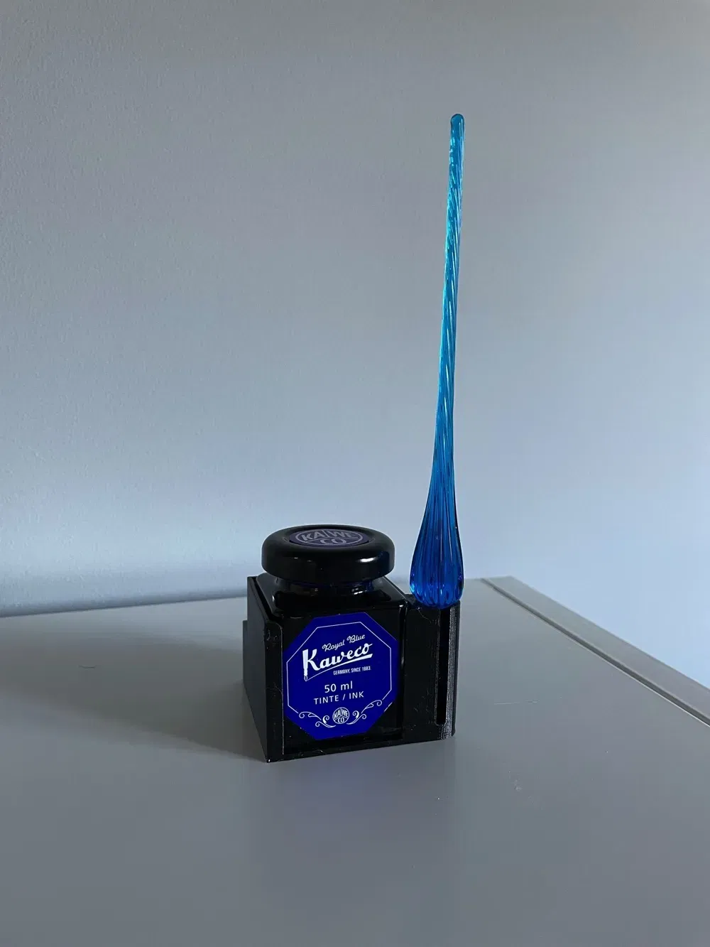 Chiều cao cho lỗ bút là 40 mm. Hình ảnh cho thấy một cây bút máy bằng thủy tinh; ngòi của nó không chạm vào đáy.