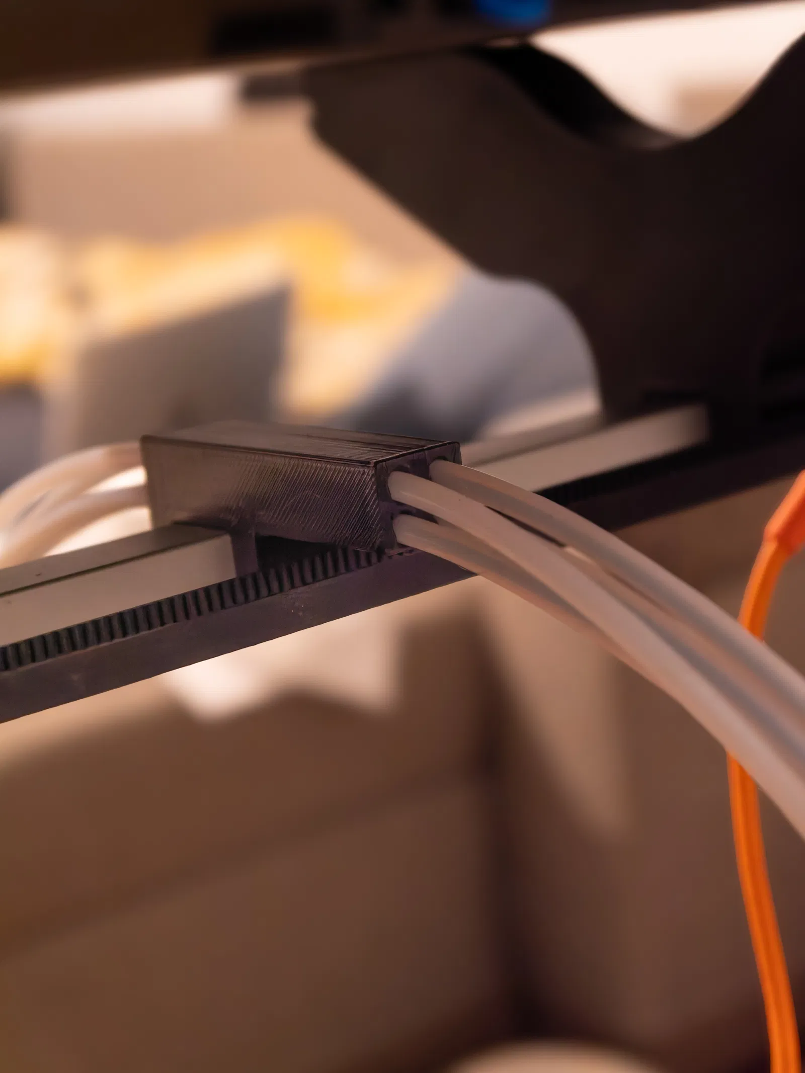 Bộ dẫn ống PTFE/Bowden đơn giản gắn trên đỉnh máy in Anycubic Kobra 3 Max. Thiết kế này rất tiện lợi cho những ai đang sử dụng Ace Pro đặt phía trên máy in, giúp cố định đường ống dẫn nhựa gọn gàng và ổn định hơn trong quá trình in ấn.