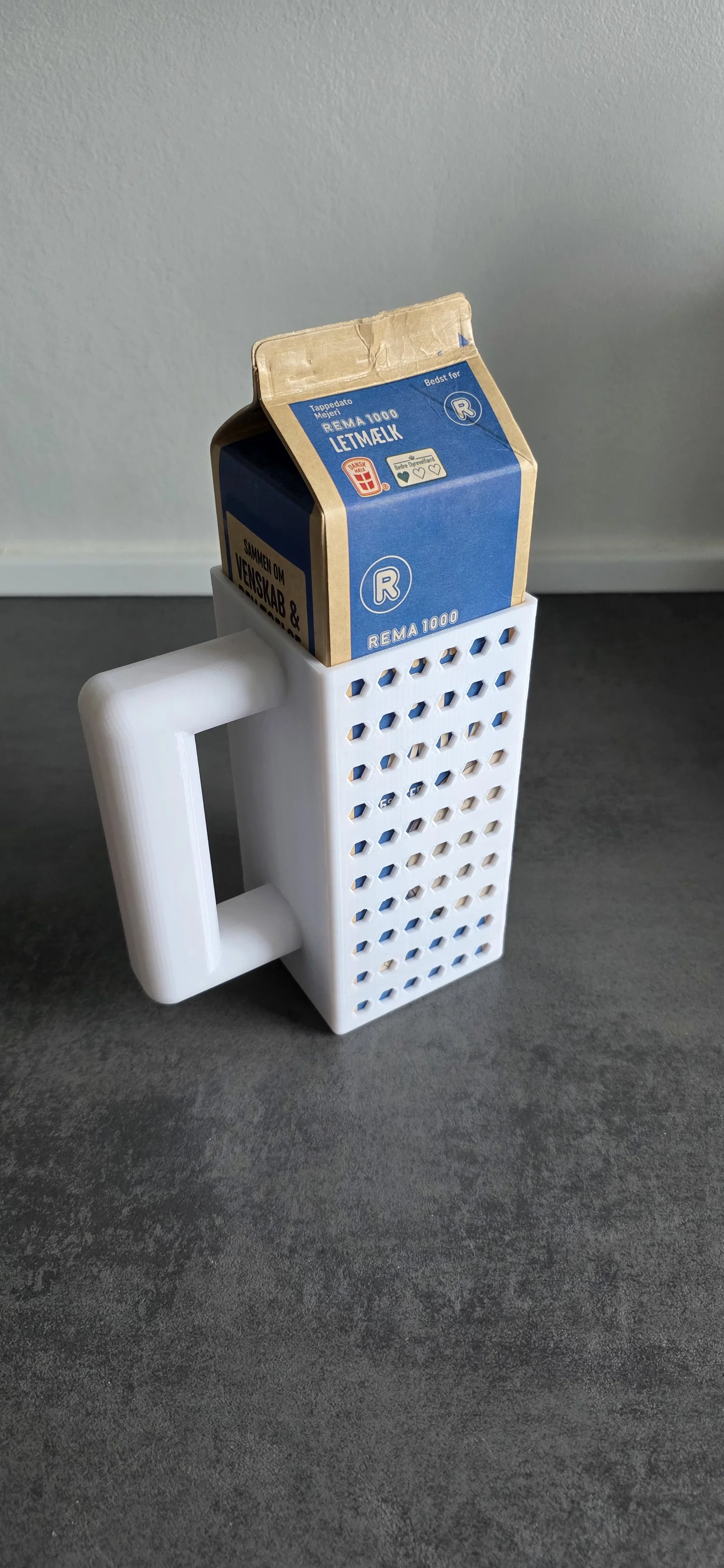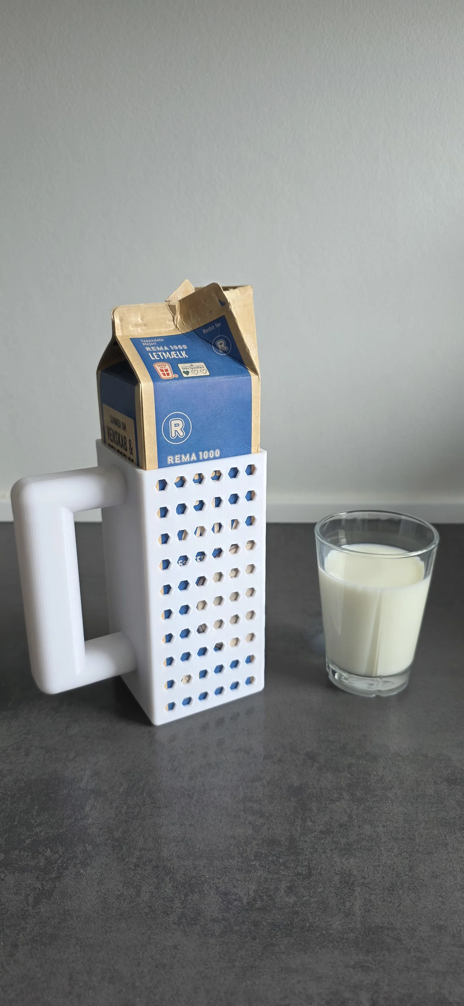Mẫu in 3D này được thiết kế để giúp bạn cầm nắm các loại hộp sữa hoặc nước trái cây 1 lít và 1 quart tiêu chuẩn một cách chắc chắn. Sản phẩm bổ sung một tay cầm cứng cáp vào hộp, giúp việc nâng, giữ và rót đồ uống trở nên chính xác và nhẹ nhàng hơn.