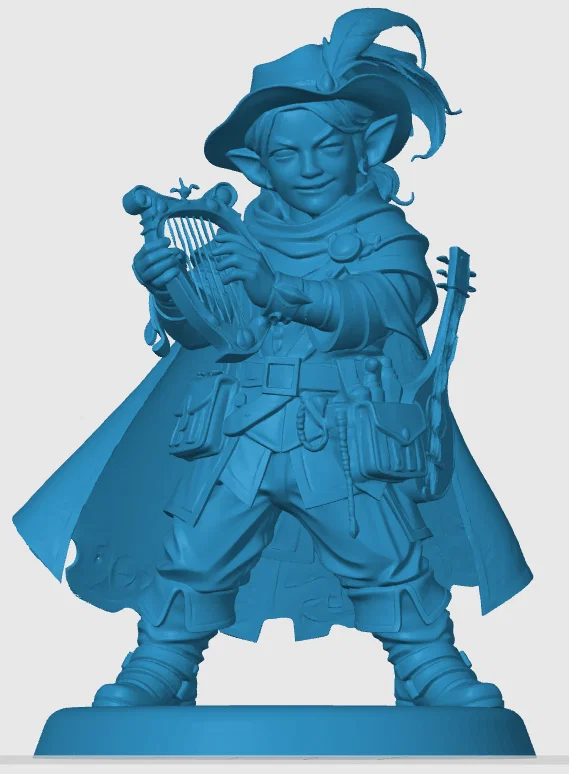 Đây là phiên bản Gnome Bard của mình. Bạn có thể cần chỉnh lại kích thước cho phù hợp với nhu cầu chơi RPG của mình. Do chi tiết của mô hình khá nhiều nên sẽ có một số phần mỏng. Mình khuyên bạn nên in bằng nhựa resin. Nếu bạn chọn in bằng sợi nhựa (filament), hãy sử dụng đầu phun nhỏ và giảm tốc độ in nhé.