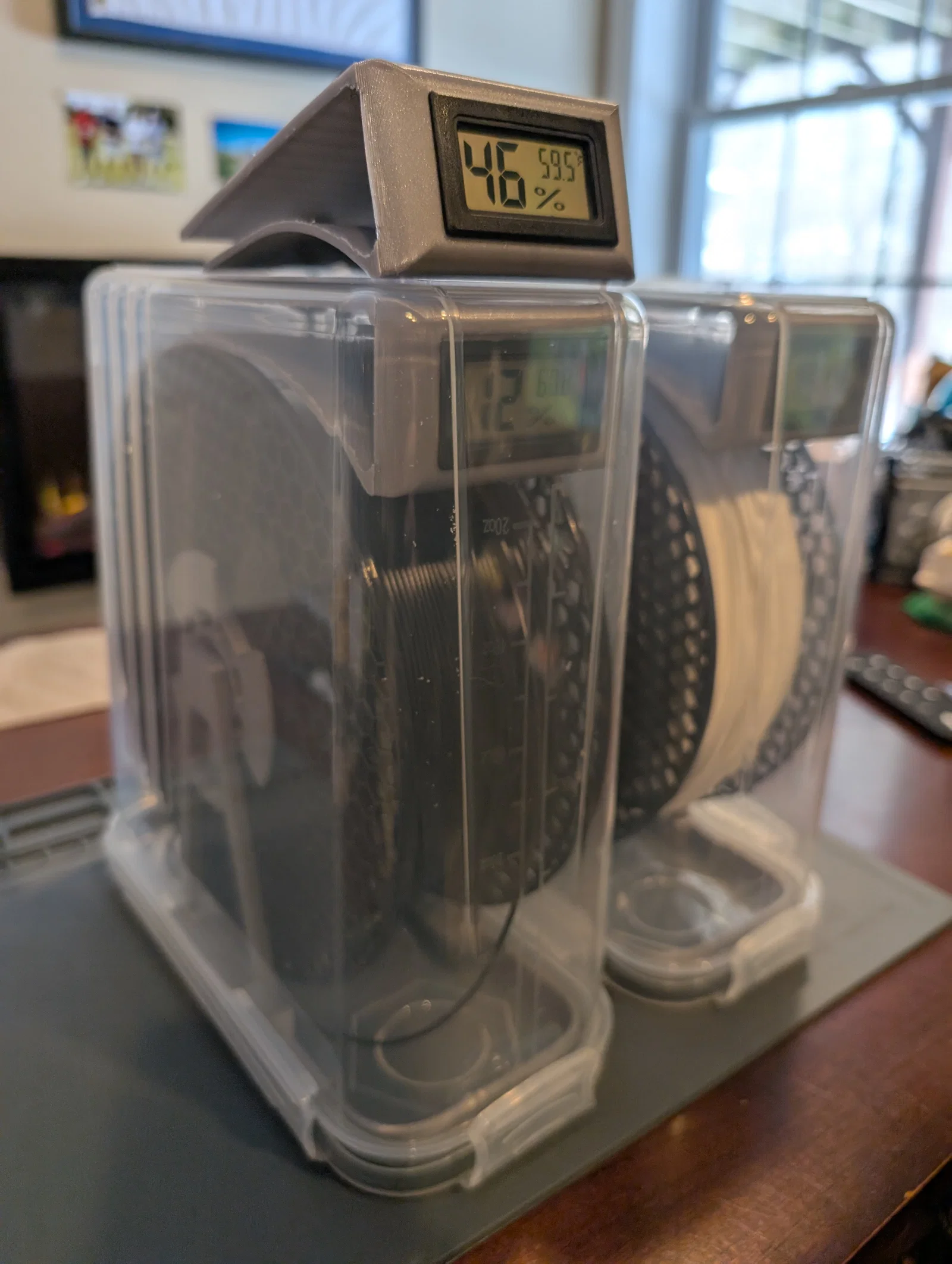 - Hygrometer Bracket (Giá đỡ ẩm kế) của @GunplaMark_876550 dễ in và cực kỳ quan trọng vì nó tạo ra lực ma sát nhẹ, ngăn cuộn nhựa bị xả quá đà khi máy in kéo nhựa.