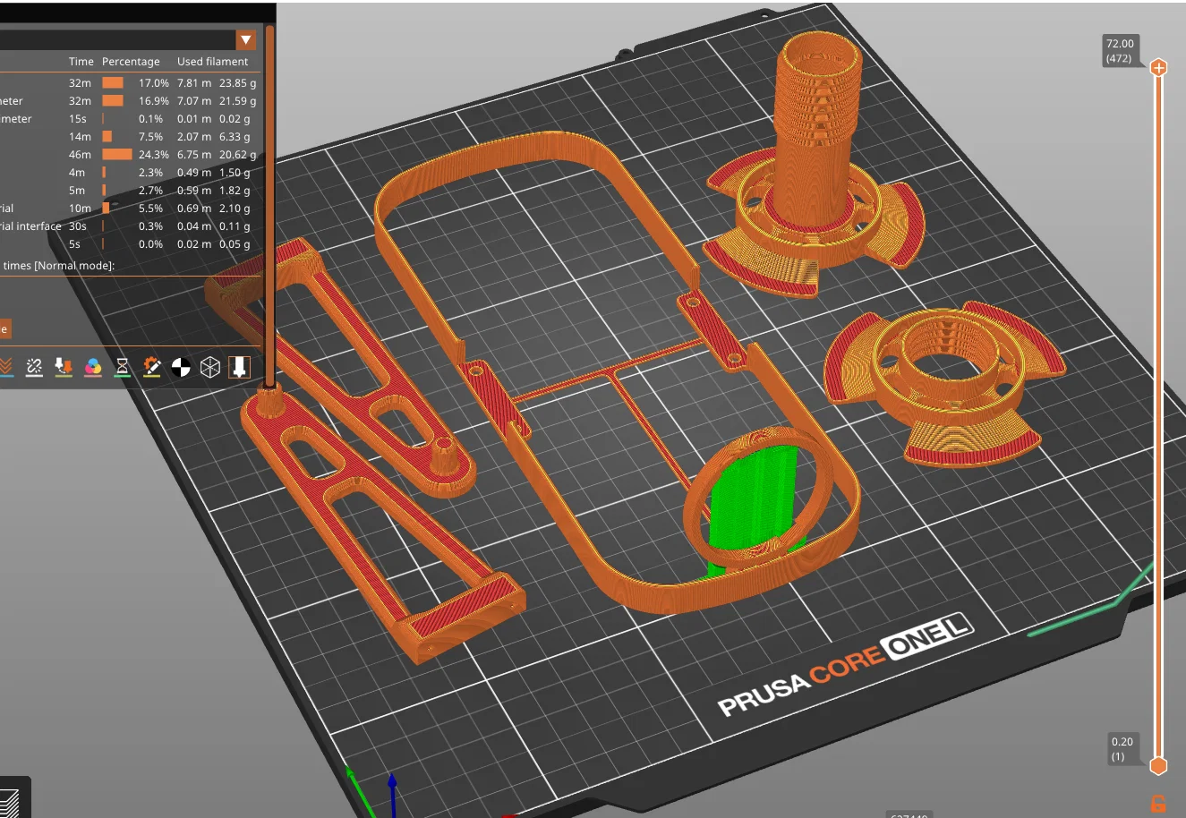 Mình đã in tất cả các bộ phận của drybox bằng nhựa PETG và có dùng thêm support cho phần giá đỡ ẩm kế. Có lẽ là không cần support cũng được, mọi người in thử rồi cho mình biết kết quả nhé!
