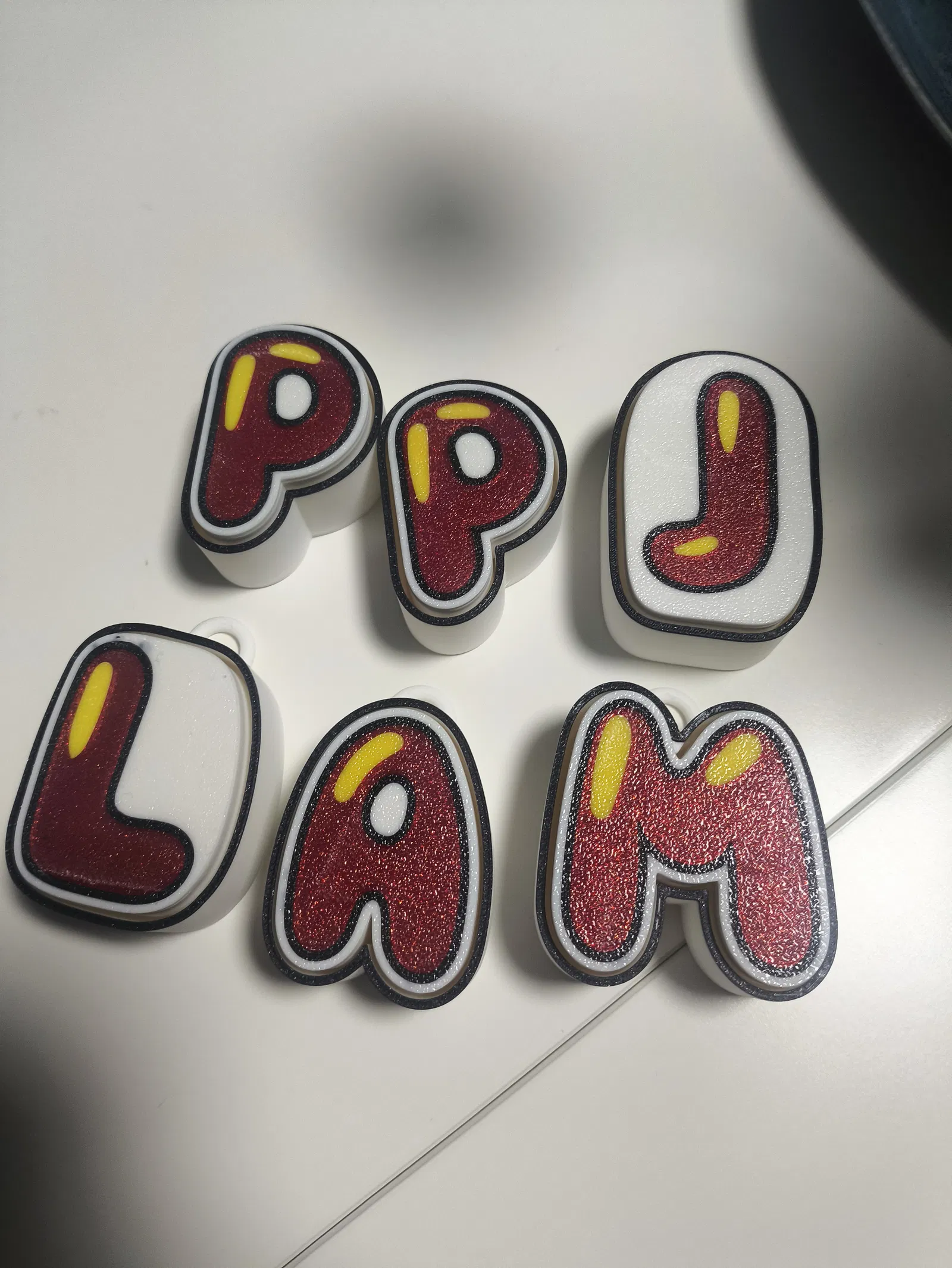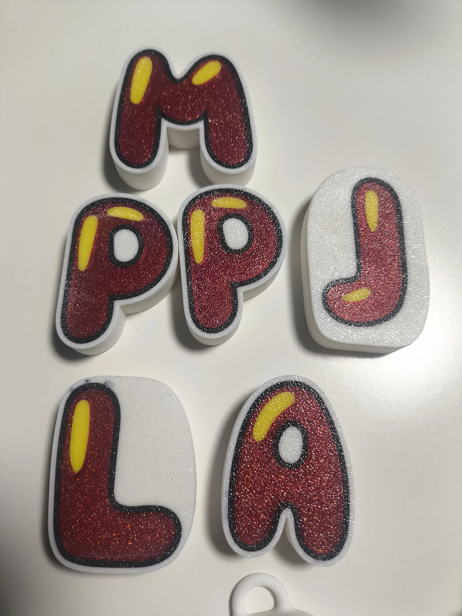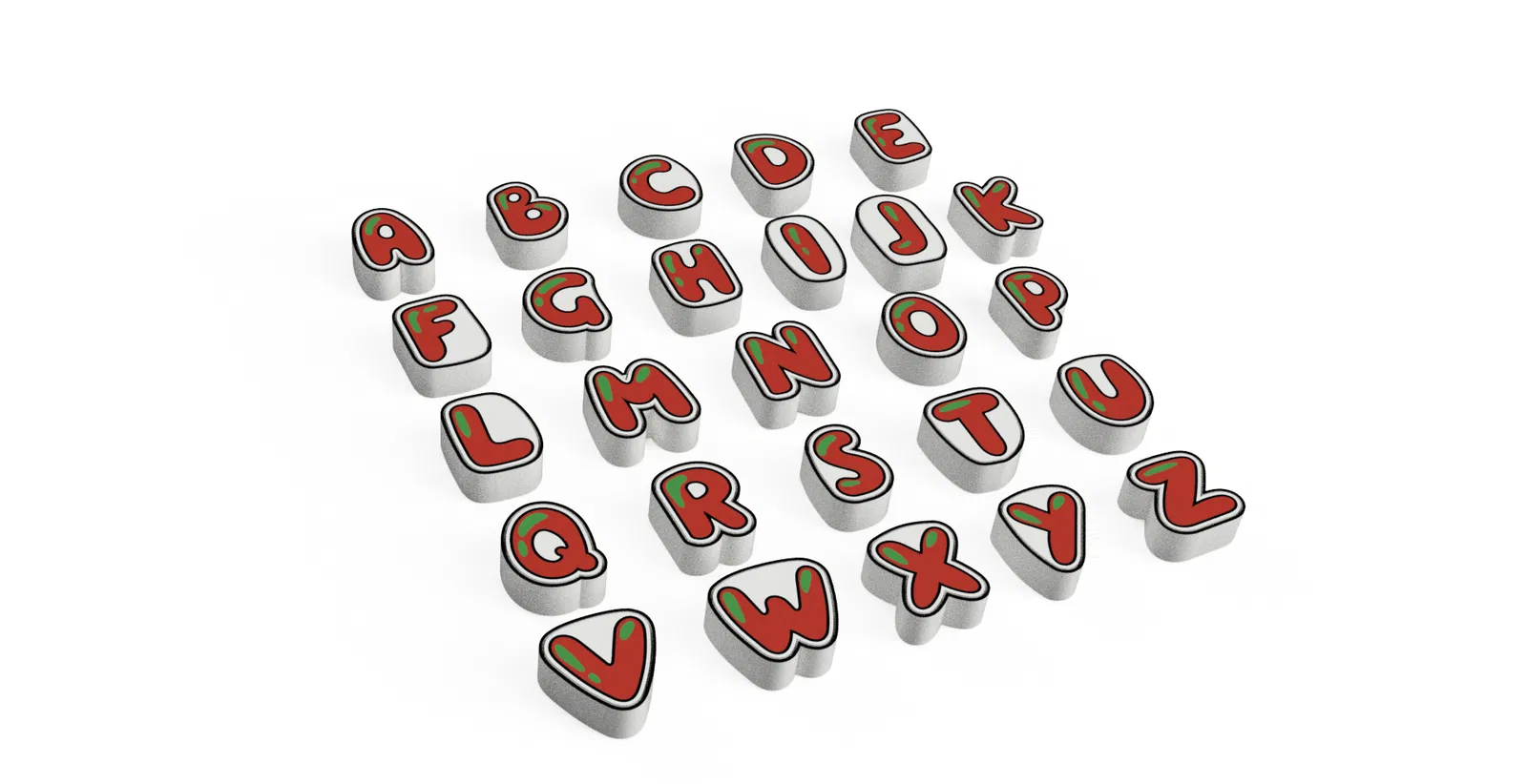 Mỗi chữ cái gồm 3 mảnh.