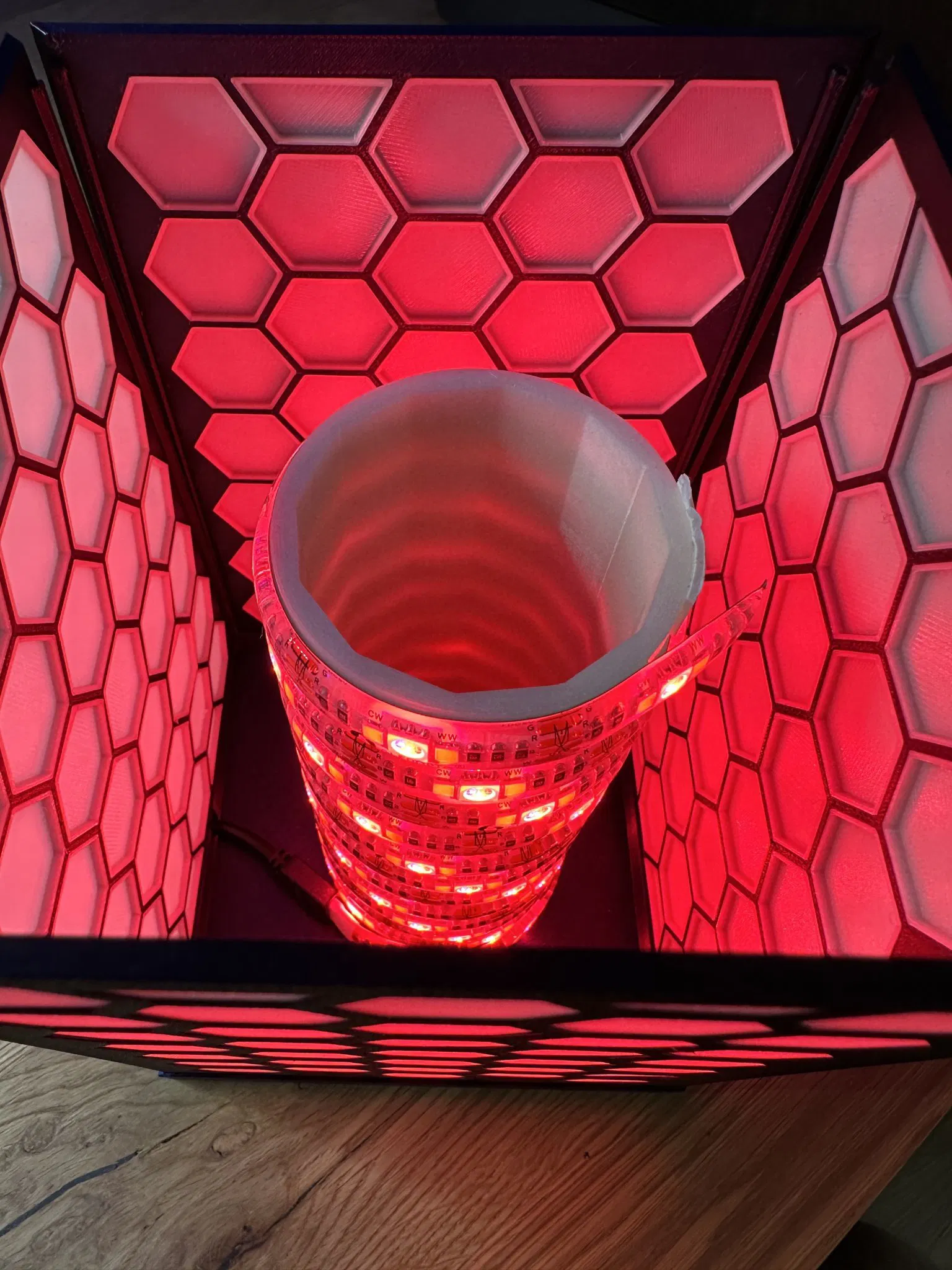 Một bản phối lại của đèn bảng hex https://www.printables.com/model/41633-hex-Table-Lamp cho dải LED.