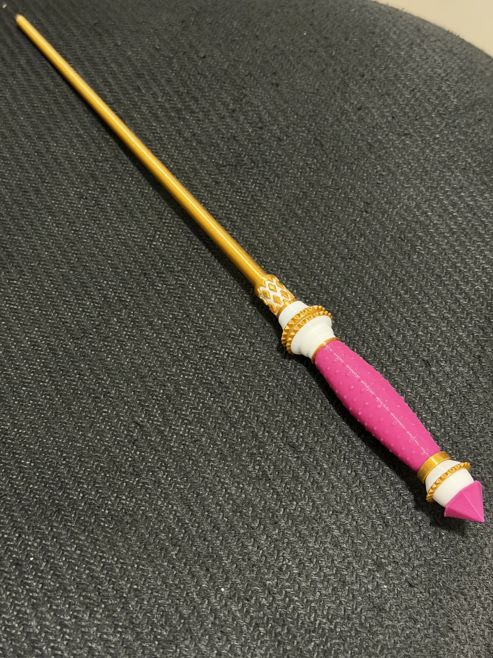 Bản remix cây đũa phép Narcissa của Shmoee với thiết kế khớp nối vặn ren. Phần ren được thiết kế lại để in nằm ngang giúp tăng độ bền. Bạn có thể tự do phối màu tùy ý khi in cho riêng mình.