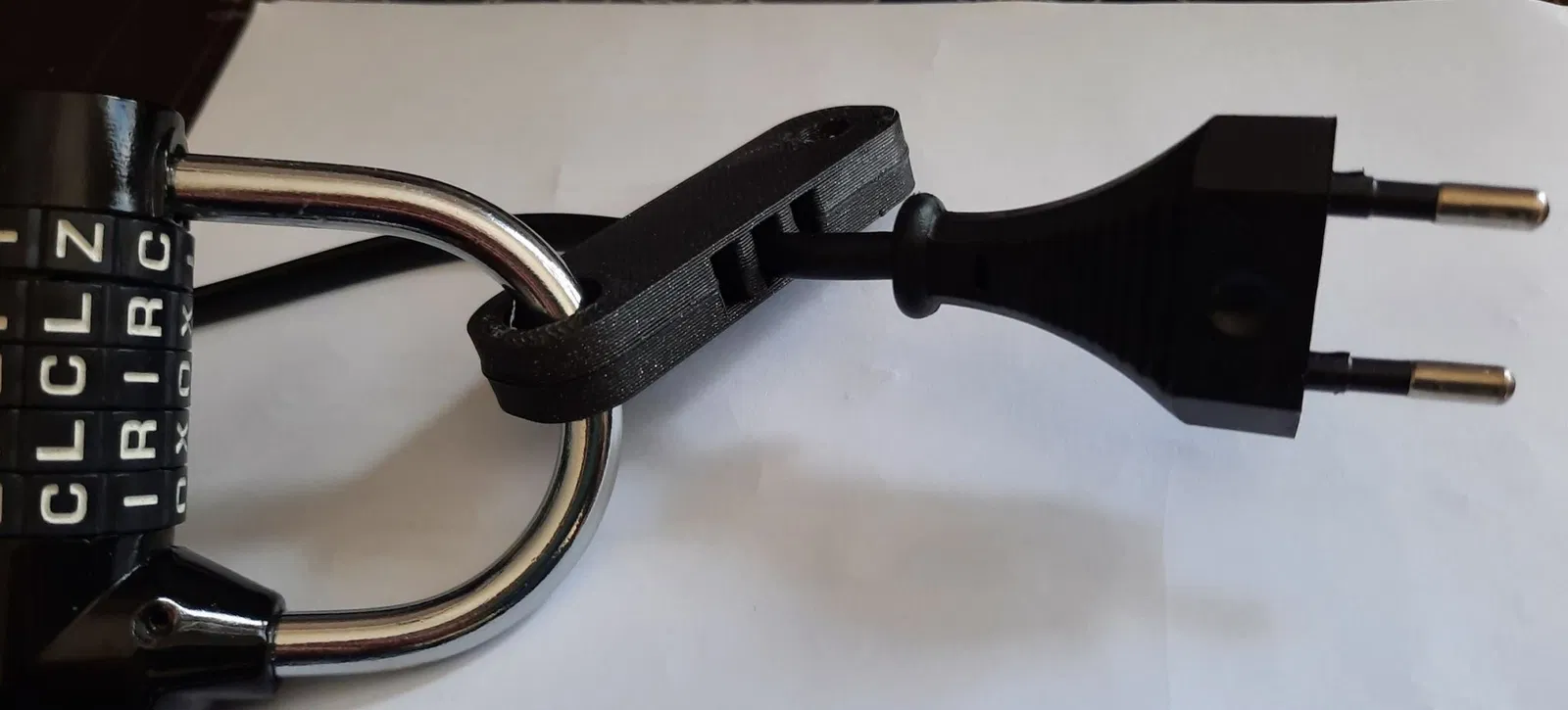 Nếu sạc cần được đặt ở một nơi đi qua, hãy lắp đặt sạc sau khi đã đi qua các dây cáp và dán "locks.stl" bằng keo PVC. Sử dụng “Cable Padlock.stl” để khóa dây nguồn.