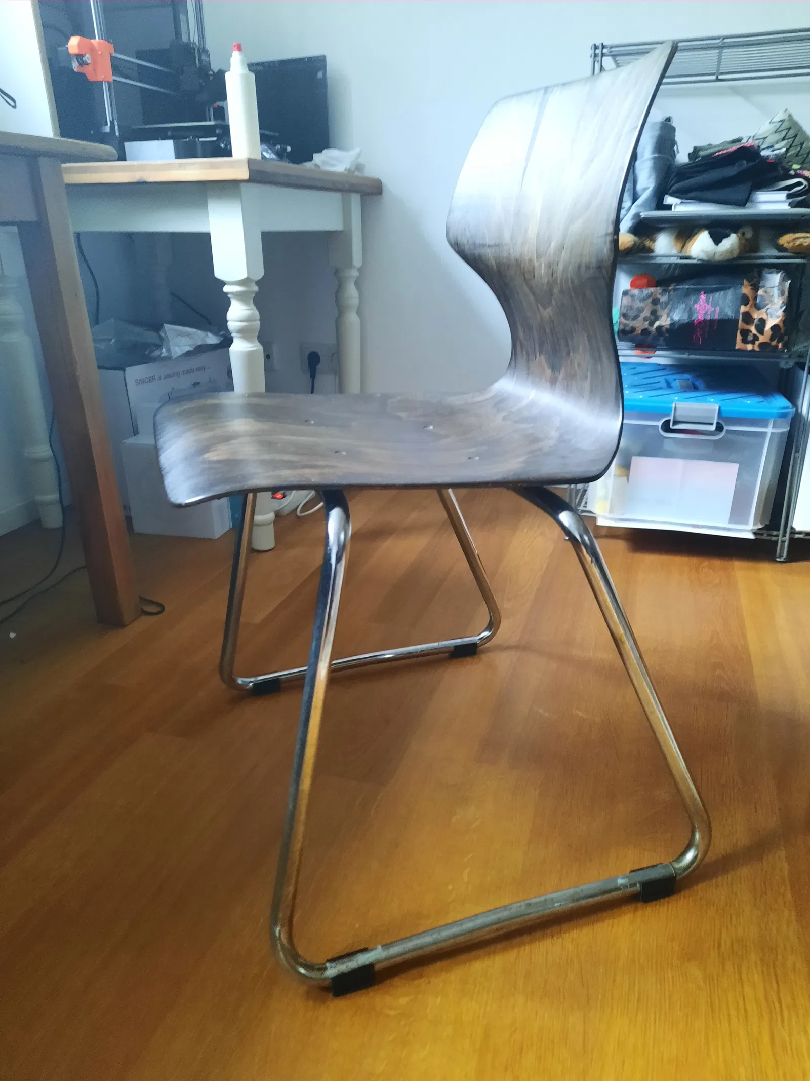 Đây là miếng lót chân (gleiter) dành cho các dòng ghế Flötotto Pagholz. Thiết kế này chưa được tối ưu lắm do mình chỉ nhận ra khi lắp ráp hoàn thiện là phần ống dưới hơi nghiêng về phía tâm, khiến miếng lót không thể đặt hoàn toàn phẳng trên mặt sàn. Tuy nhiên, nếu bạn dán thêm một miếng nỉ dày (khoảng 5mm) vào dưới đế thì nó vẫn hoạt động tốt. Ngoài ra, kích thước lỗ khoan trên ống kim loại của ghế ở các vị trí không đồng đều nhau, nên mình phải dùng máy khoan để mở rộng thêm một chút mới lắp vừa chốt.