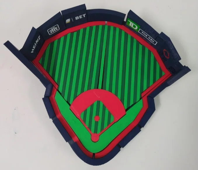Đây là mô hình sân vận động Roger's Centre năm 2025, sân nhà của đội Toronto Blue Jays, được thu nhỏ theo tỷ lệ 1:500. Phần tường đã được thu nhỏ đúng tỷ lệ 1:500, nhưng chiều cao được tăng lên gấp 6 lần để mô hình trông bắt mắt và dễ nhìn hơn.