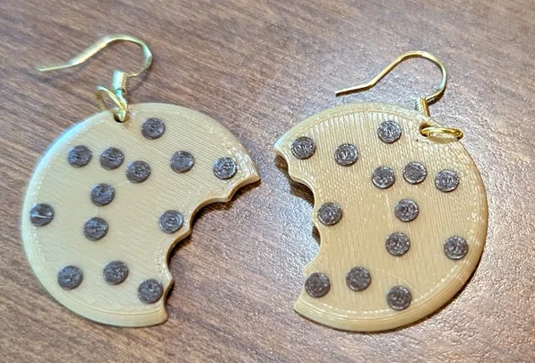 Mẫu bông tai hình bánh quy chocolate chip mới ra lò với kiểu dáng bị cắn dở đầy thú vị. Thiết kế nhỏ gọn với đường kính 35mm, cực kỳ dễ thương và dễ in bằng nhựa PLA để làm phụ kiện thời trang độc đáo.