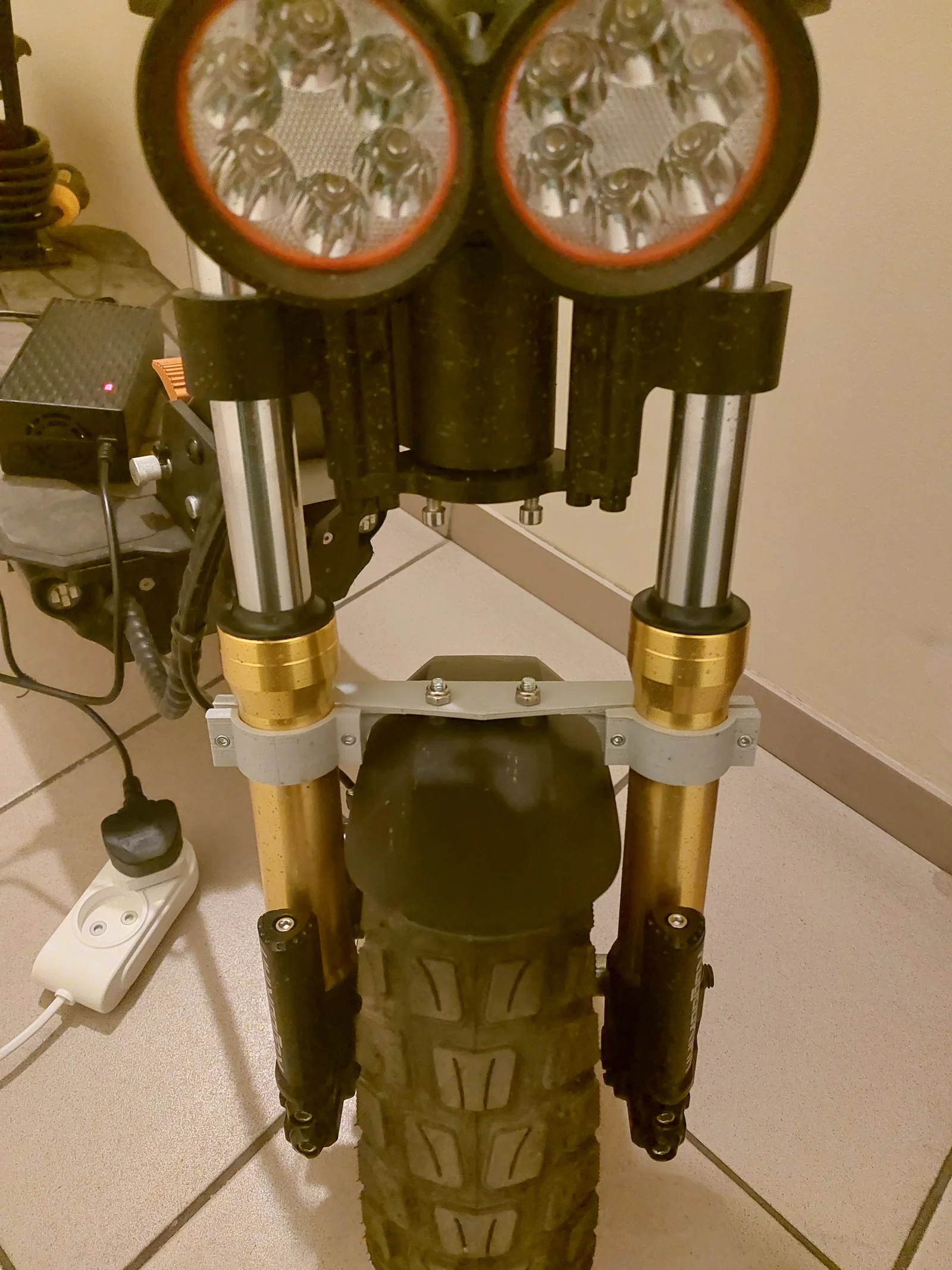 Sản phẩm này được thiết kế theo dạng kẹp đôi, bám chặt vào hai ống phuộc trước của xe Kukirin M5 Pro. Khi in bộ phận này, bạn cần lưu ý lựa chọn vật liệu in phù hợp để đảm bảo độ bền trong điều kiện rung lắc liên tục khi xe chạy. Các kỹ sư hoặc người chơi xe điện thường khuyên dùng nhựa ABS+ hoặc các loại vật liệu chịu nhiệt, chịu lực cao để tránh tình trạng nứt gãy do tác động của nhiệt độ từ môi trường hoặc va chạm nhẹ.