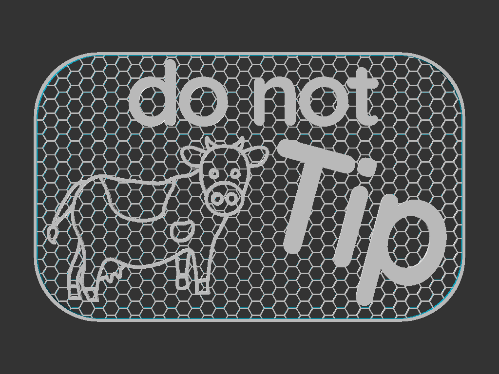 Bảng hiệu kích thước 100x160mm in hình chú bò với thông điệp "Do Not Tip". Mẫu thiết kế có sẵn định dạng Mesh và Solid, hỗ trợ in nhiều màu. Phù hợp để trang trí trong khung Shadowbox, giúp không gian của bạn thêm sinh động và hài hước.