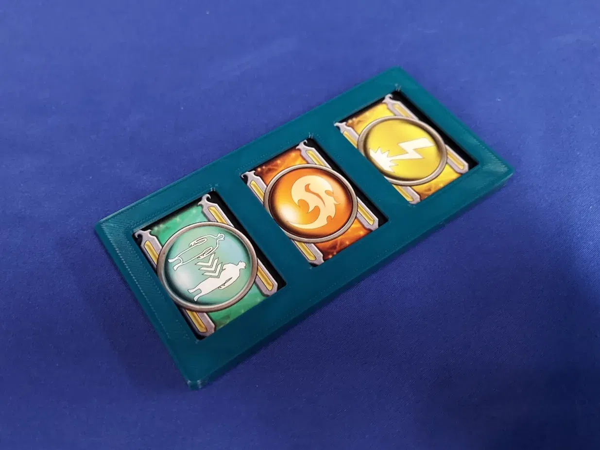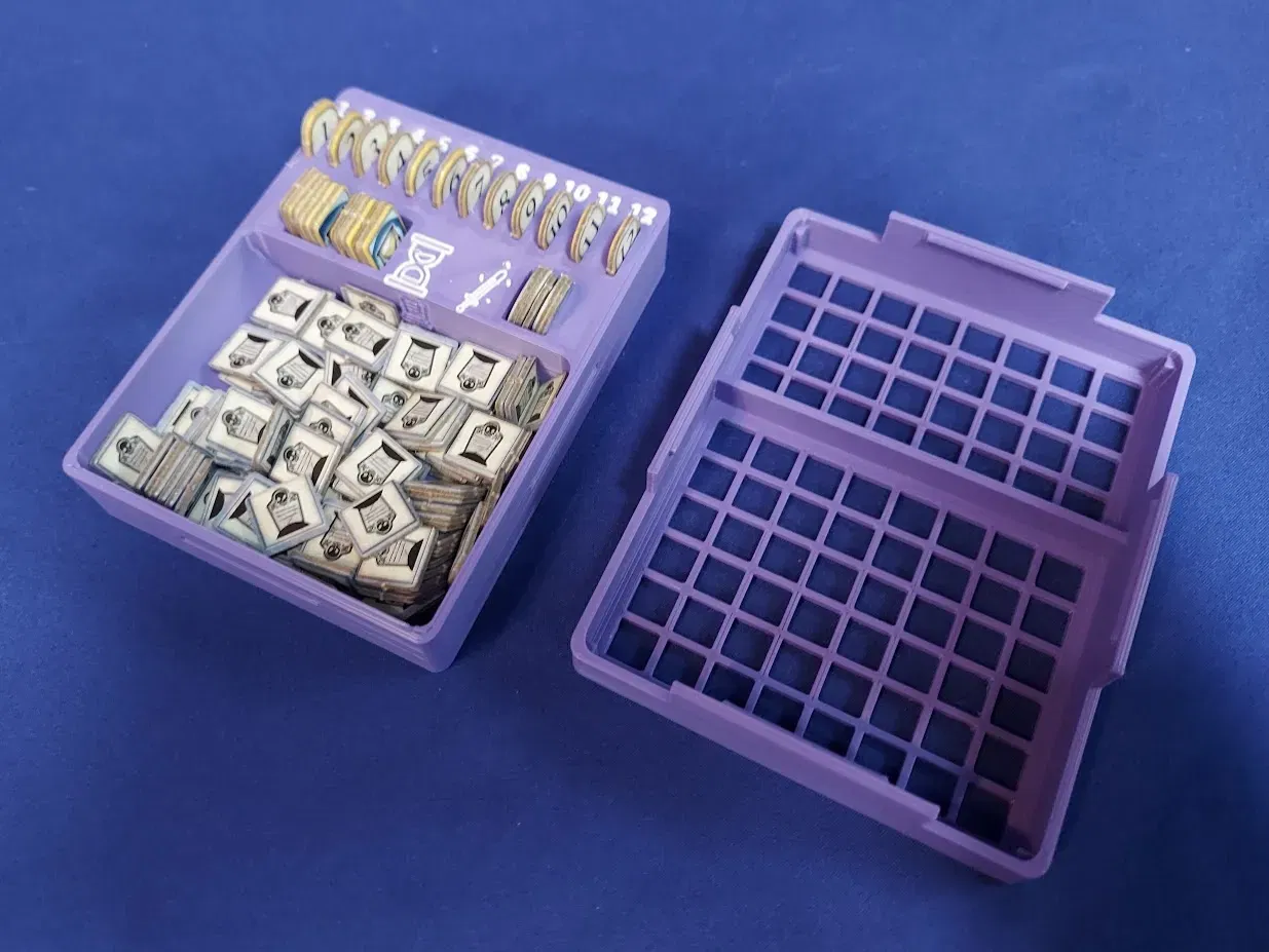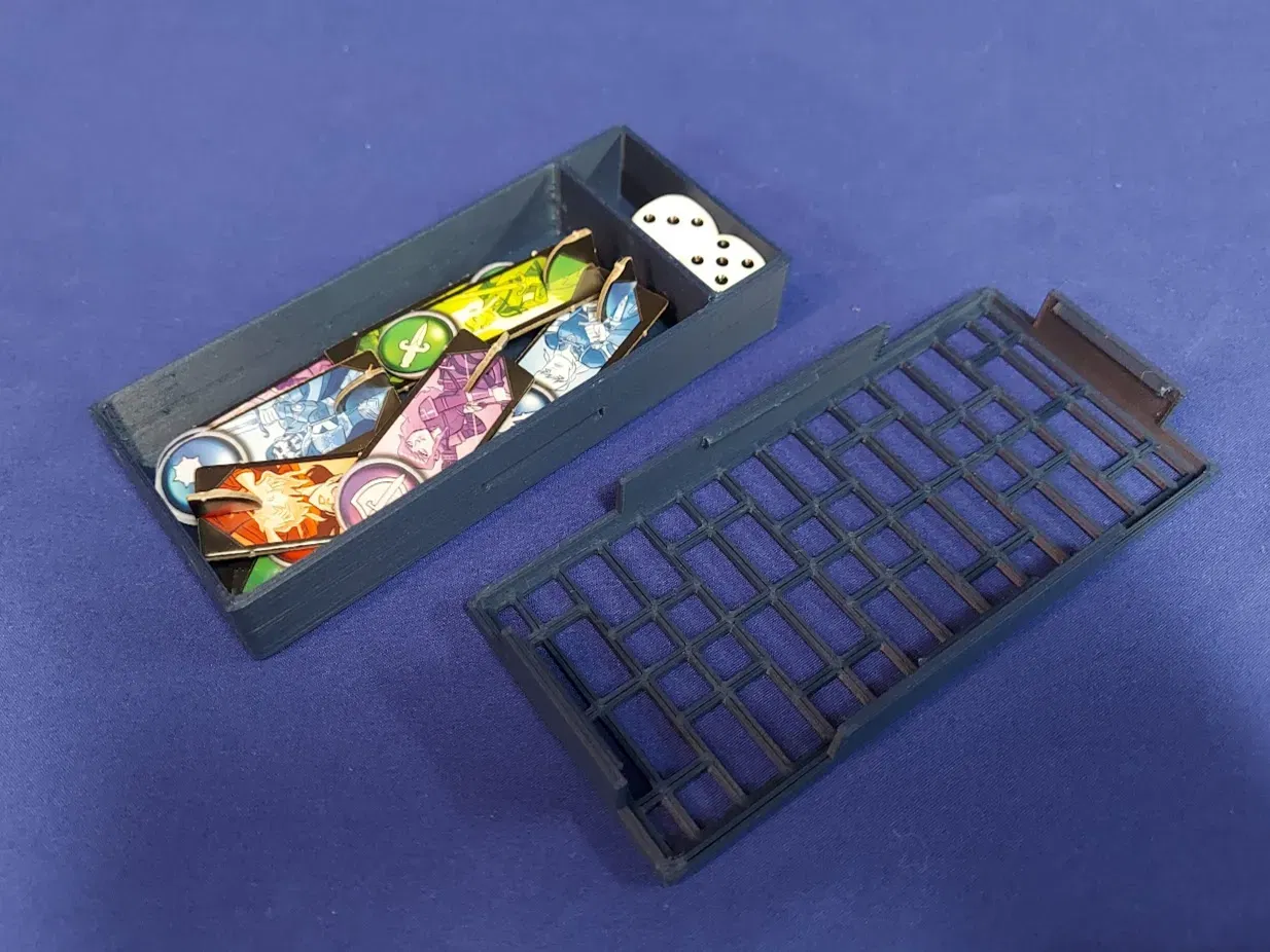 Các ngăn riêng biệt giữ mỗi 12 Số token, Mất lượt token, Kiếm ma thuật token, và Bị đánh bại token. 12 token Số nằm trong một hàng ở trên cùng. Các token Mất lượt vừa vặn trong hai ngăn ở giữa bên trái. Các token Kiếm ma thuật chiếm giữa bên phải. Cuối cùng, ngăn lớn ở dưới cùng giữ các token bia mộ Bị đánh bại.