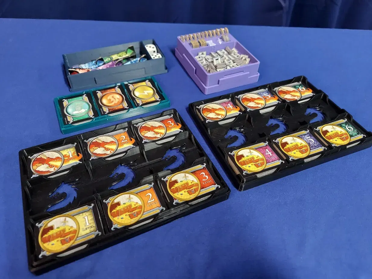 Bộ và khay thẻ cho Dungeon! Trò chơi bảng giả tưởng để sử dụng trong khi chơi và lưu trữ trong hộp.