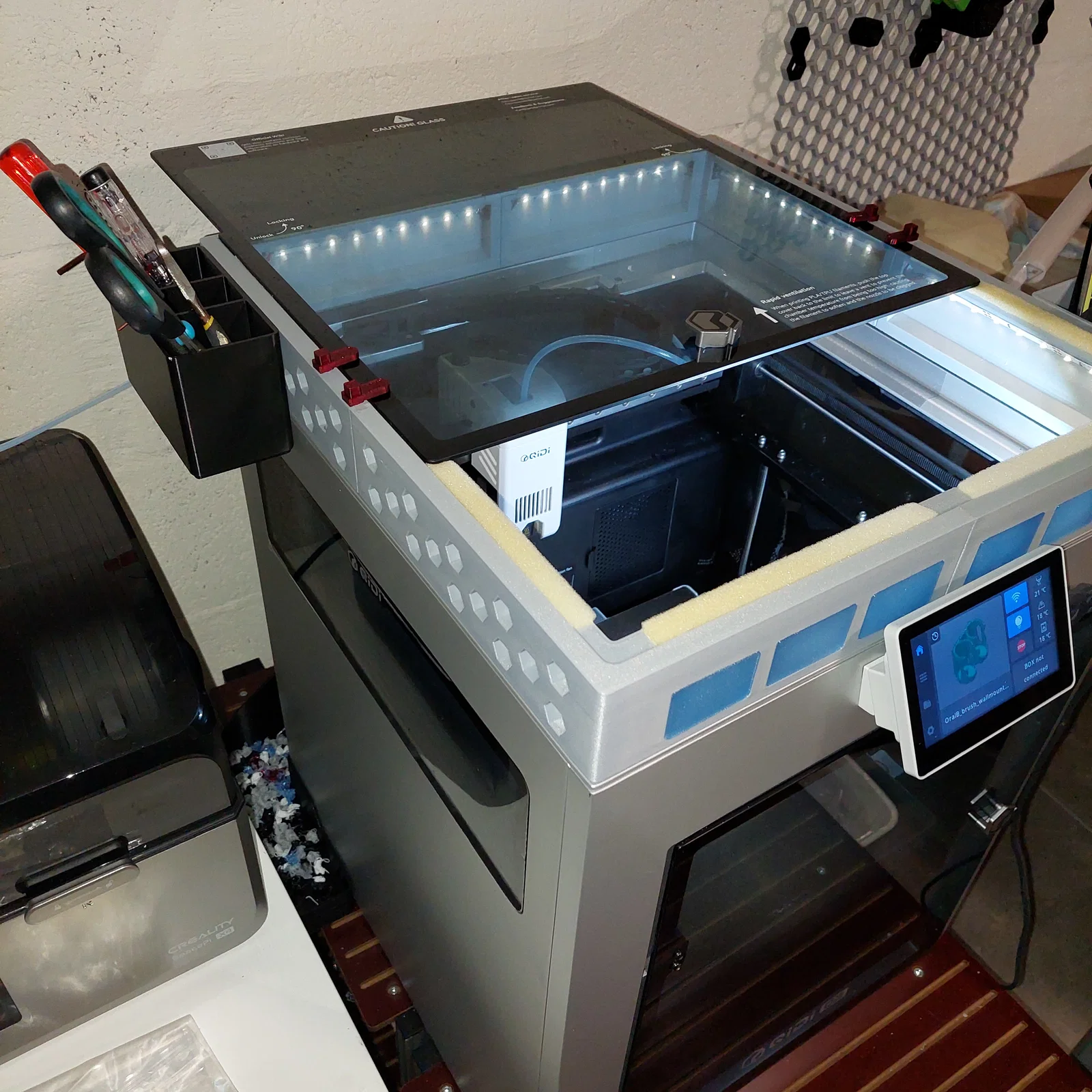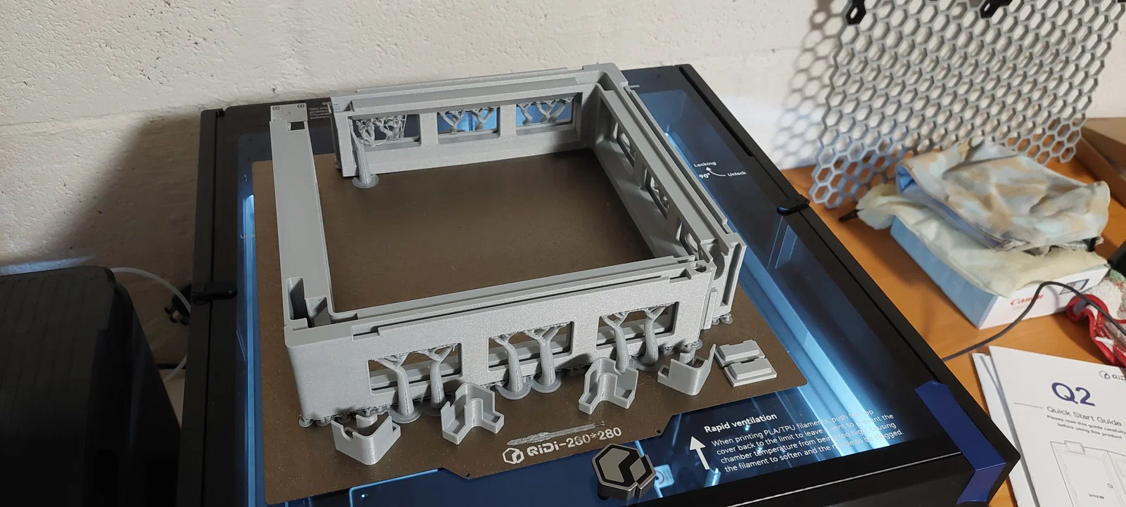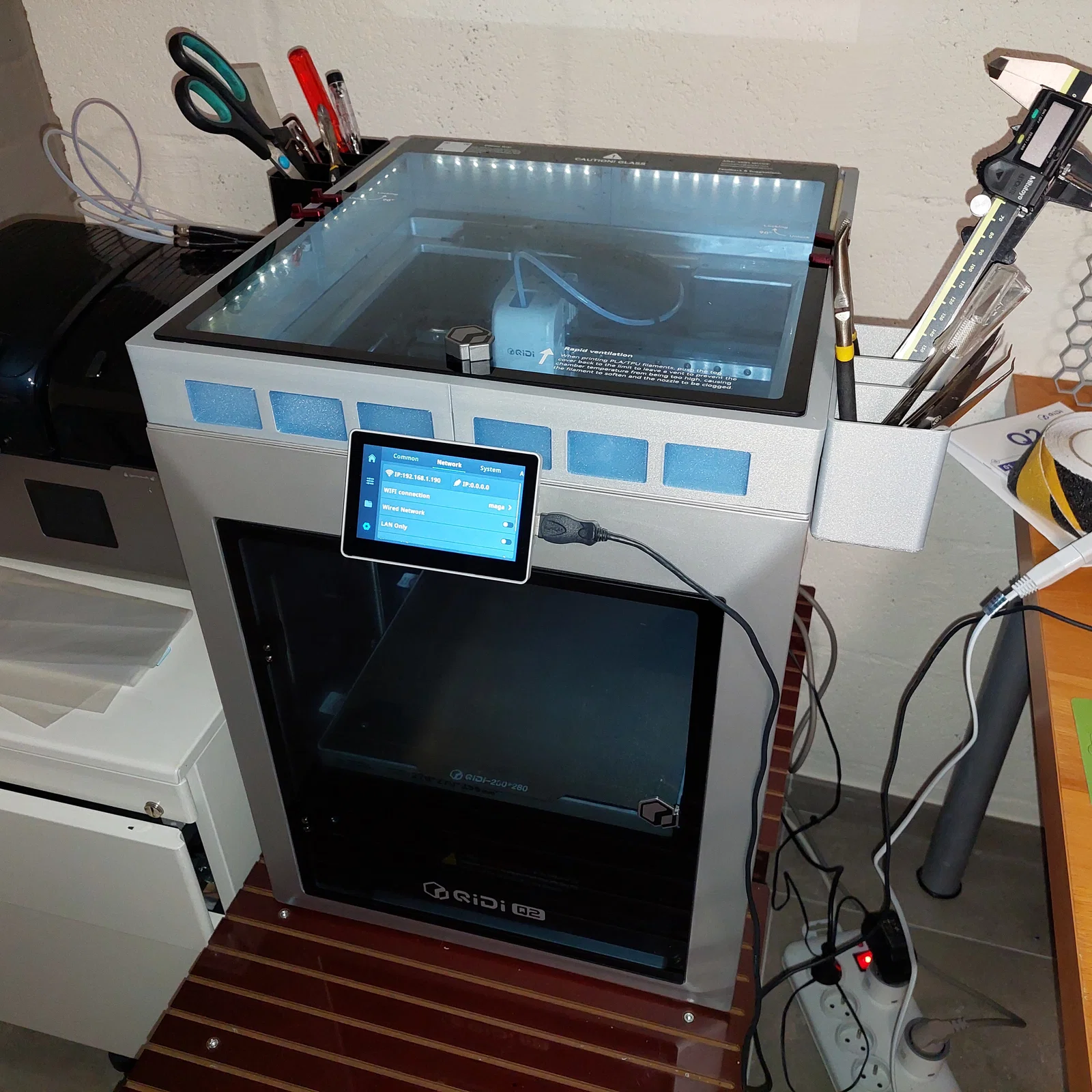 Bộ Riser tùy chỉnh cho máy in QIDI Q2 giúp nâng chiều cao, tăng cường ánh sáng LED và tích hợp tường Honeycomb linh hoạt để sắp xếp dụng cụ. Thiết kế chắc chắn, hỗ trợ in ABS/ASA hiệu quả và tích hợp tốt với HomeAssistant.