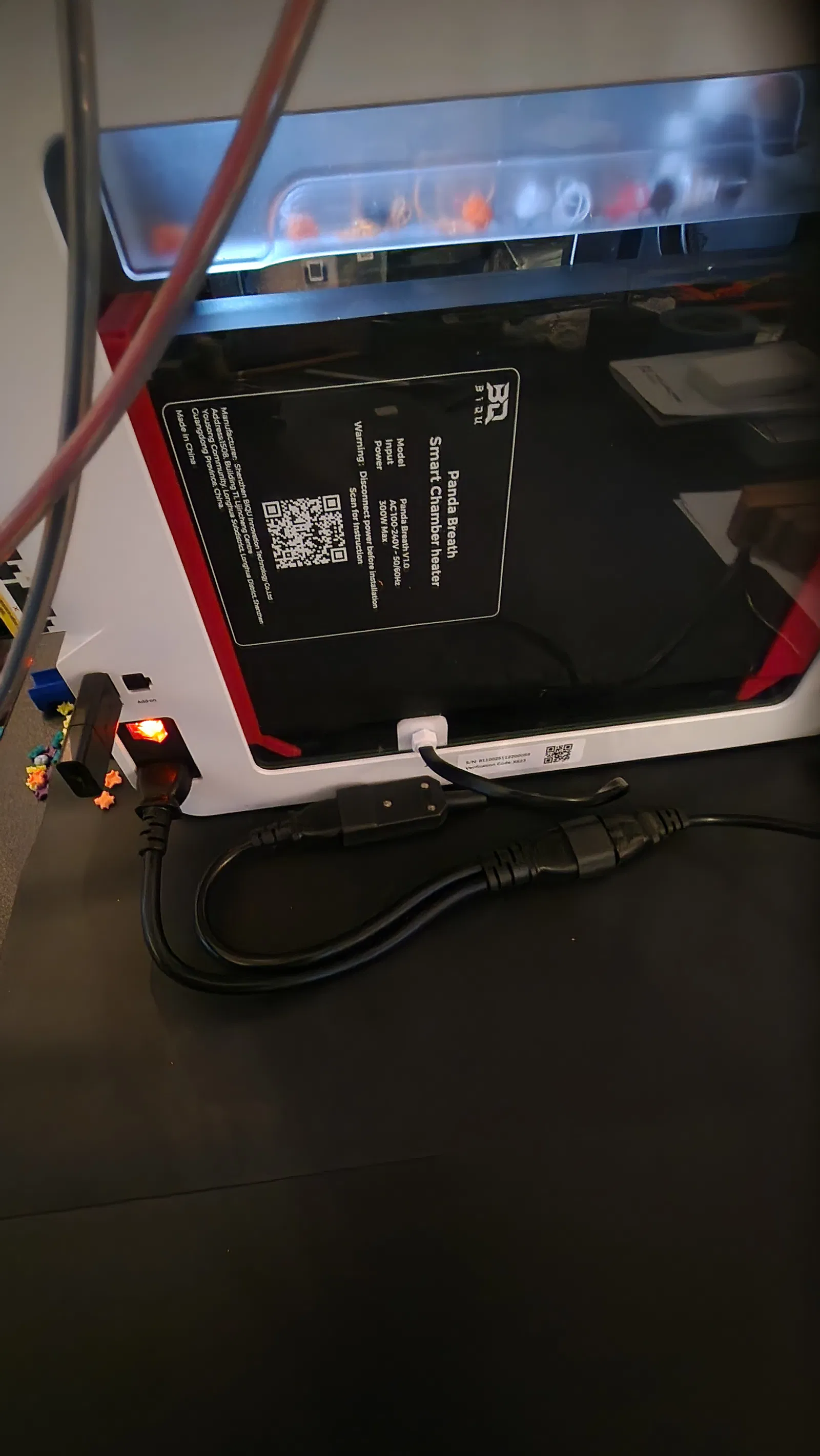 Mình không ưng cách đi dây cáp cho cái Panda Breath trên máy Snapmaker U1 của mình lắm, nên mình quyết định khoan luôn một lỗ ở tấm kính phía sau. Nếu cần thì vẫn bịt lại được dễ dàng nha.