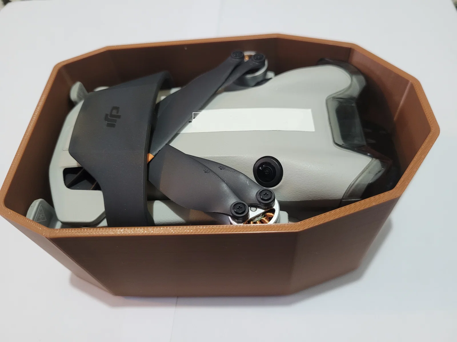 Việc tự in một chiếc hộp bảo vệ không chỉ tiết kiệm chi phí mà còn giúp bạn chủ động hơn trong việc bảo quản thiết bị bay. Phần nắp hộp được thiết kế tinh tế với logo DJI Mini 4 Pro dập nổi, tạo cảm giác sang trọng và chuyên nghiệp. Bên trong, hộp có các chi tiết khớp nối để cố định flycam, giúp máy không bị xê dịch hay va chạm mạnh khi bạn mang theo trong các chuyến đi dài ngày hoặc những chuyến dã ngoại ngoài trời.