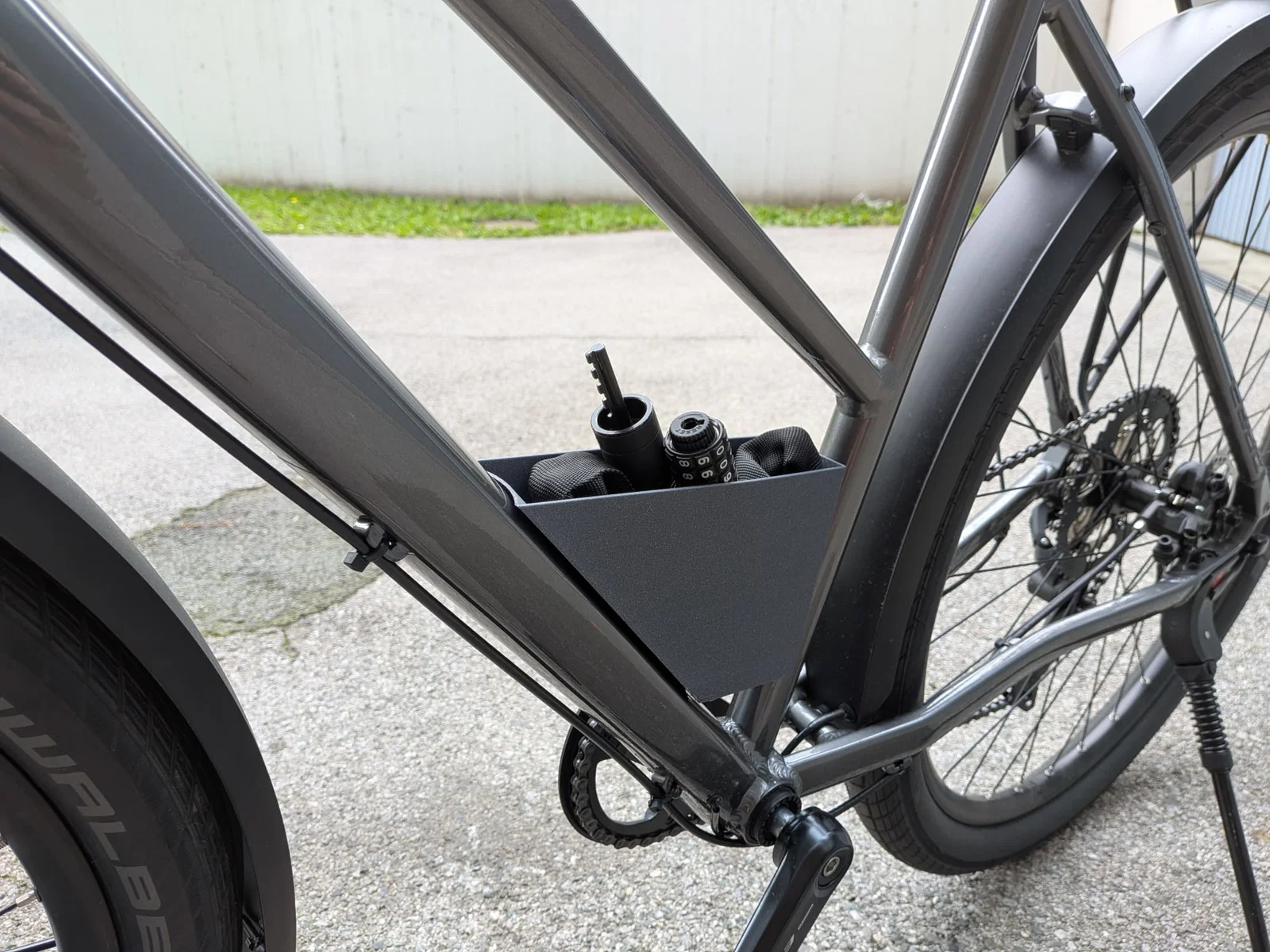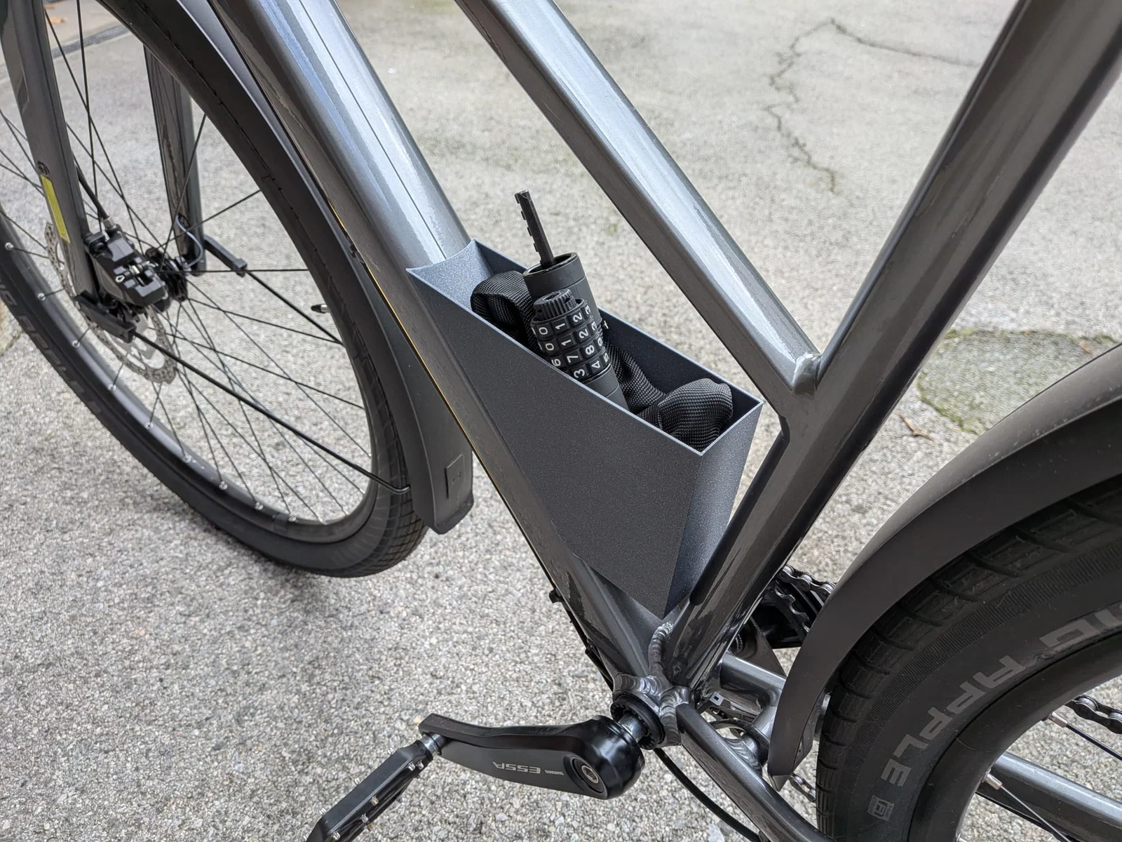 Đây là một chiếc giỏ in 3D đa năng, được thiết kế để gắn vào các lỗ bắt ốc tiêu chuẩn của gọng bình nước trên xe đạp Cube Hyde. Bạn có thể dùng nó để đựng khóa xích, dụng cụ sửa xe hoặc những món đồ nhỏ khác một cách chắc chắn ngay trong phần khung tam giác của xe.