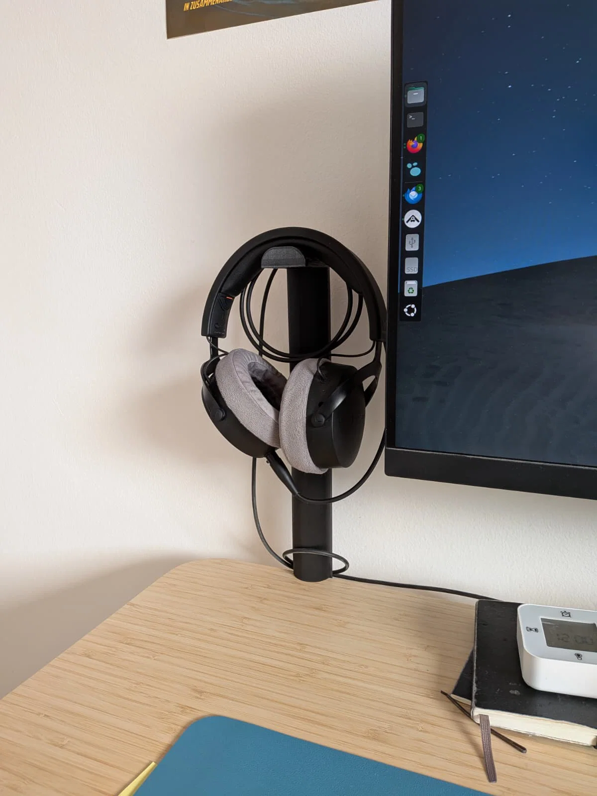 Giá treo tai nghe tiện lợi bắt vít trực tiếp vào mặt dưới bàn IKEA Anfallare, giúp giữ tai nghe gọn gàng trên không. Thiết kế tối giản, chắc chắn, kèm file gốc FreeCAD để bạn dễ dàng tùy chỉnh kích thước theo nhu cầu sử dụng.
