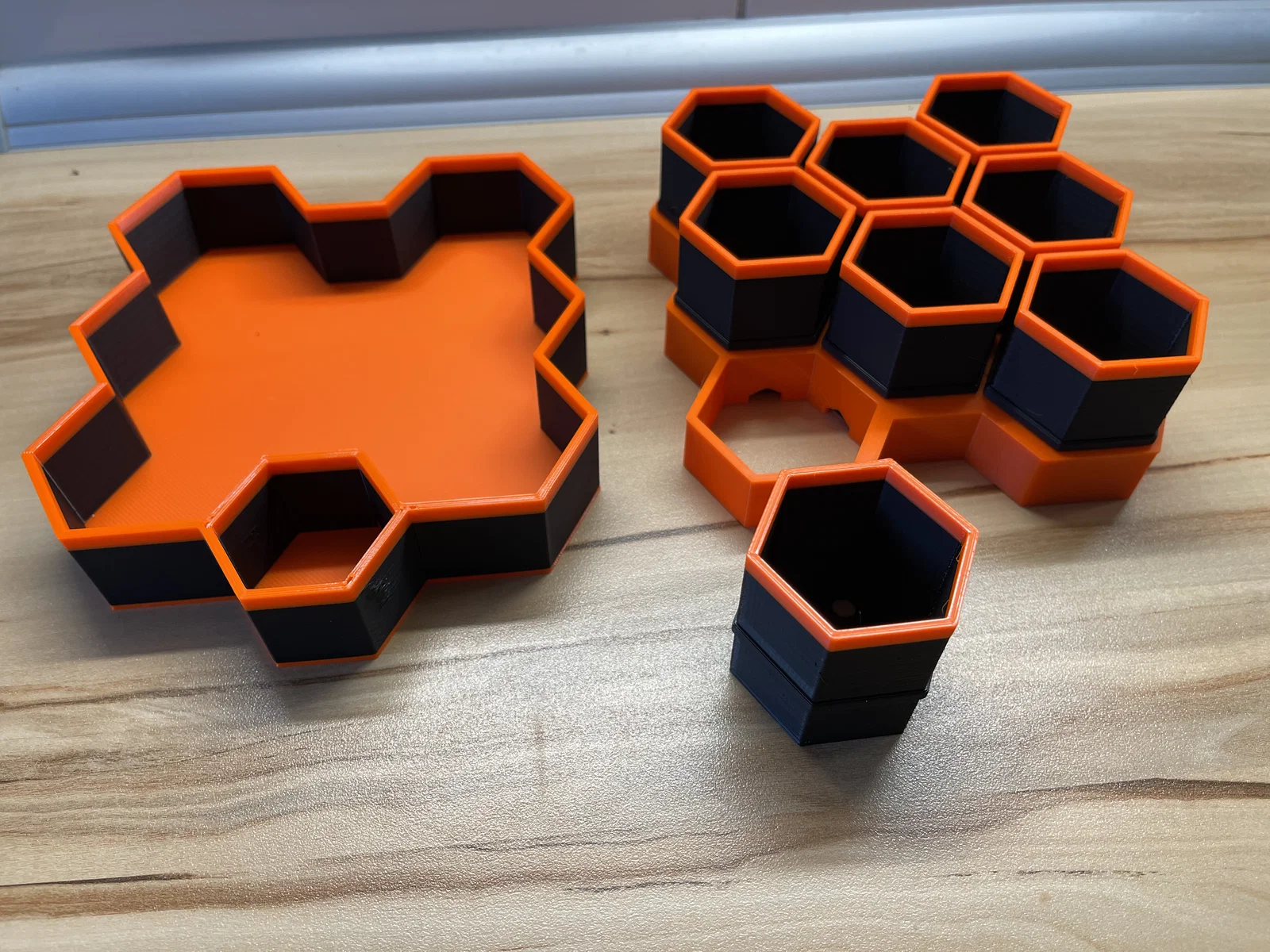 Chậu trồng cây con HexaGrow hình lục giác với 8 ngăn để bạn ươm cây giống. Bạn có thể xếp nhiều chậu HexaGrow cạnh nhau trên bệ cửa sổ vì chúng được thiết kế để khớp hoàn hảo với nhau (xem ảnh minh họa). Đi kèm là một chậu lục giác nhỏ hơn dùng làm bể chứa nước để bạn tưới cho cây con. Cập nhật ngày 06/11/22: Đã thêm lưới lót bên trong chậu và dụng cụ hỗ trợ để lấy cây con ra khỏi chậu một cách dễ dàng hơn. Hãy cho mình biết nếu bạn có ý tưởng hay cải tiến nào nhé.
