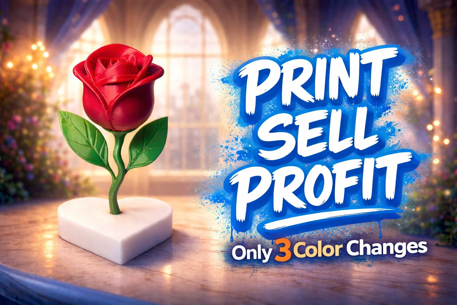Sản phẩm này đặc biệt chú trọng vào tính ứng dụng và thẩm mỹ với yêu cầu kỹ thuật cực kỳ đơn giản: chỉ cần thực hiện 3 lần đổi màu nhựa (filament change). Bạn có thể dễ dàng phối hợp các tông màu rực rỡ như đỏ cho bông hoa, xanh cho phần thân lá và màu trắng hoặc màu trung tính cho phần đế để tạo nên một tác phẩm nghệ thuật thu nhỏ đầy sống động. Mẫu thiết kế này rất phù hợp để làm đồ trang trí trong phòng, quà tặng bất ngờ cho các bé hoặc những người yêu thích sự lãng mạn.