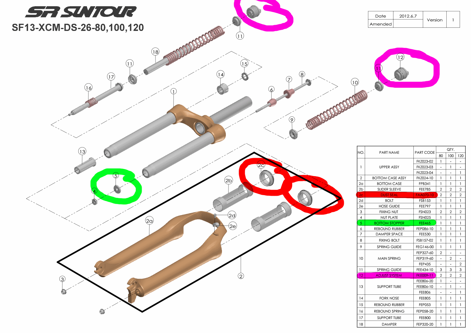 Để không phải bảo dưỡng và vệ sinh liên tục, mình đã thiết kế bộ linh kiện tương thích với SR Suntour SF13-XCM, cho phép bạn sử dụng phớt chặn dầu của ô tô. Giải pháp này bảo vệ bên trong phuộc tốt hơn nhiều so với phớt chắn bụi zin, nhờ đó bạn có thể chuyển sang dùng dầu nhớt thay vì mỡ bò đặc. Kết quả là phuộc sẽ được bôi trơn tốt hơn, sạch sẽ hơn, bền bỉ hơn và đỡ tốn công chăm sóc.