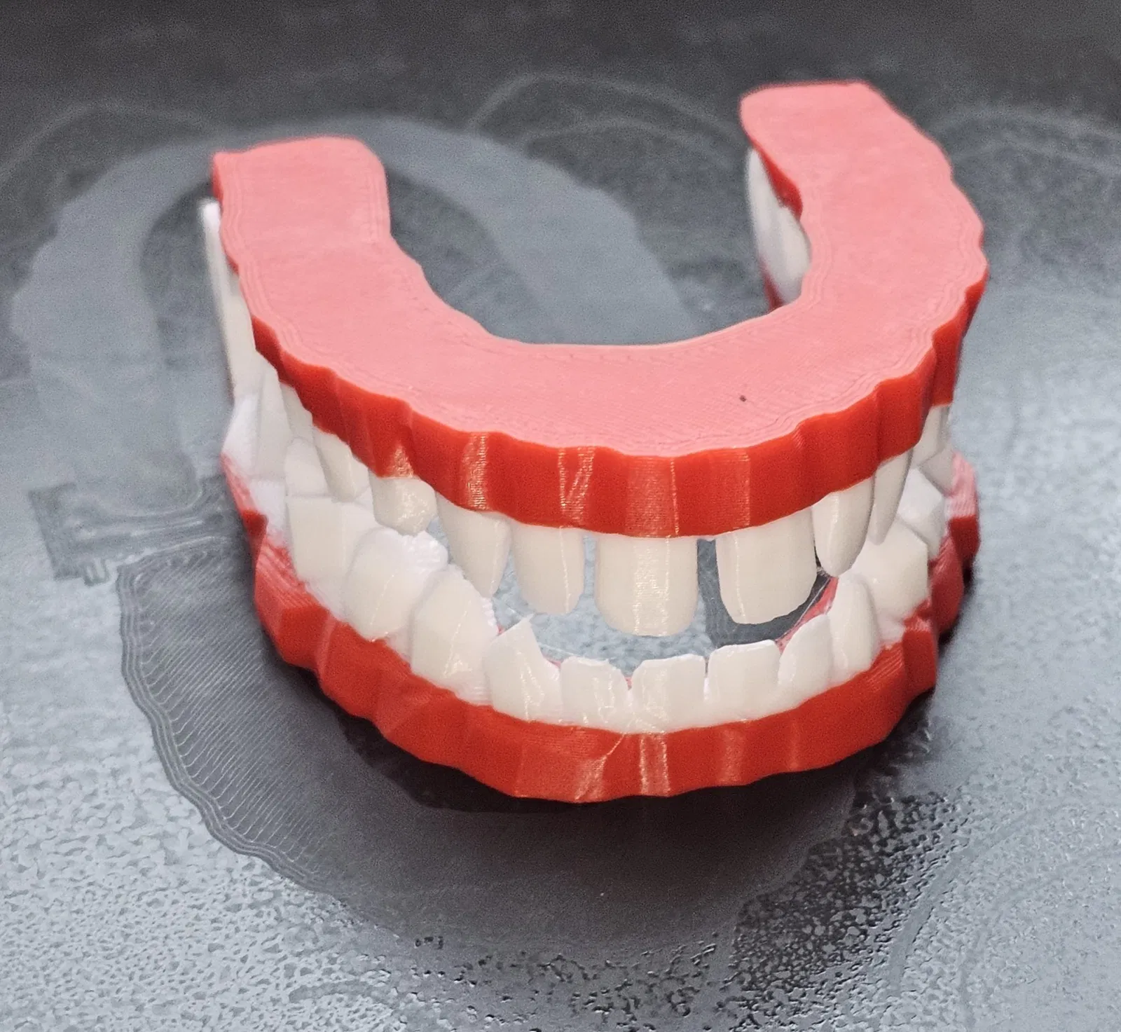 Tôi đã loại bỏ lưỡi để dễ dàng tiếp cận các răng hơn với bàn chải. Tôi đã cắt mô hình để tiết kiệm trọng lượng và thời gian in. Tôi đã xoay mô hình để thực hiện một thay đổi màu nhanh ở lớp 33.