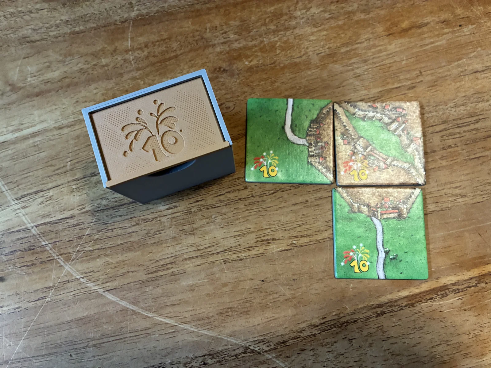 Nếu bạn là một tín đồ của board game Carcassonne, chắc chắn bạn sẽ hiểu cảm giác khó chịu khi các mảnh ghép nhỏ như bộ kỷ niệm The Festival bị thất lạc hoặc để lộn xộn trong hộp lớn. Mẫu hộp đựng được thiết kế đặc biệt này chính là giải pháp hoàn hảo giúp bạn giữ gìn bộ sưu tập của mình một cách ngăn nắp và chuyên nghiệp nhất. Không chỉ giúp bảo vệ các mảnh ghép khỏi trầy xước, chiếc hộp còn tạo điểm nhấn thẩm mỹ cho kệ game của bạn nhờ thiết kế tinh tế với phần nắp được in biểu tượng kỷ niệm 10 năm và 15 năm đặc trưng.